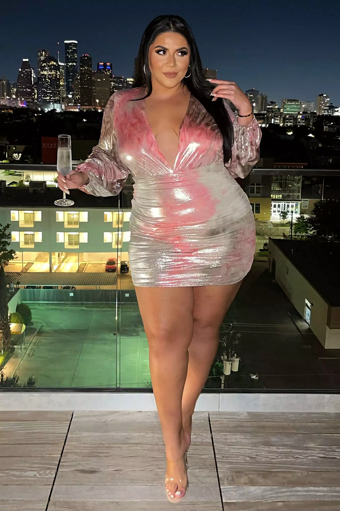 Fashion Nova A Bold Sight Metallic Mini Dress – Pink