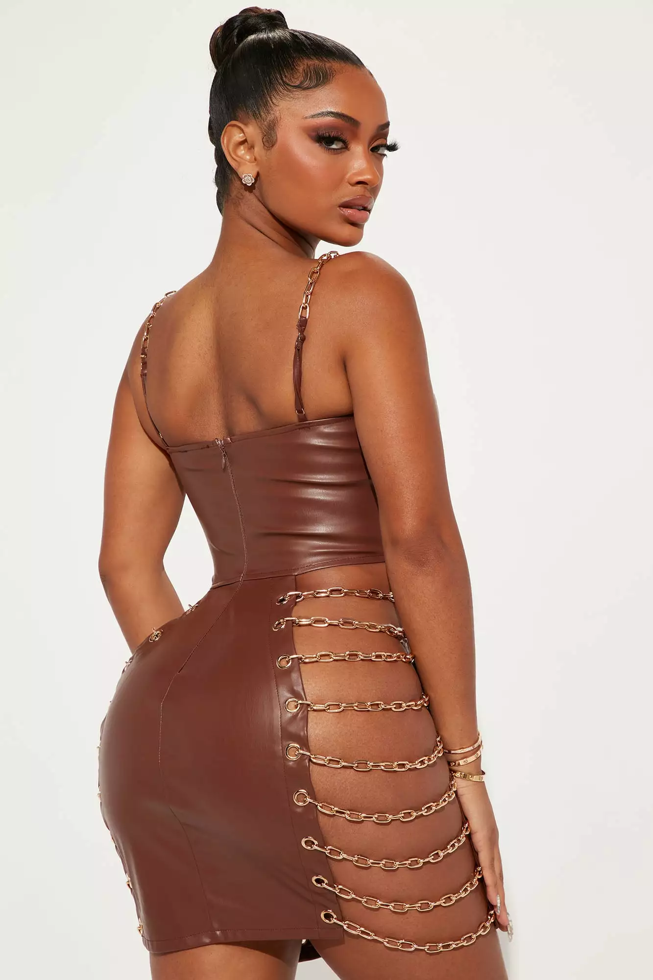 Fashion Nova A Wild Night PU Mini Dress – Brown