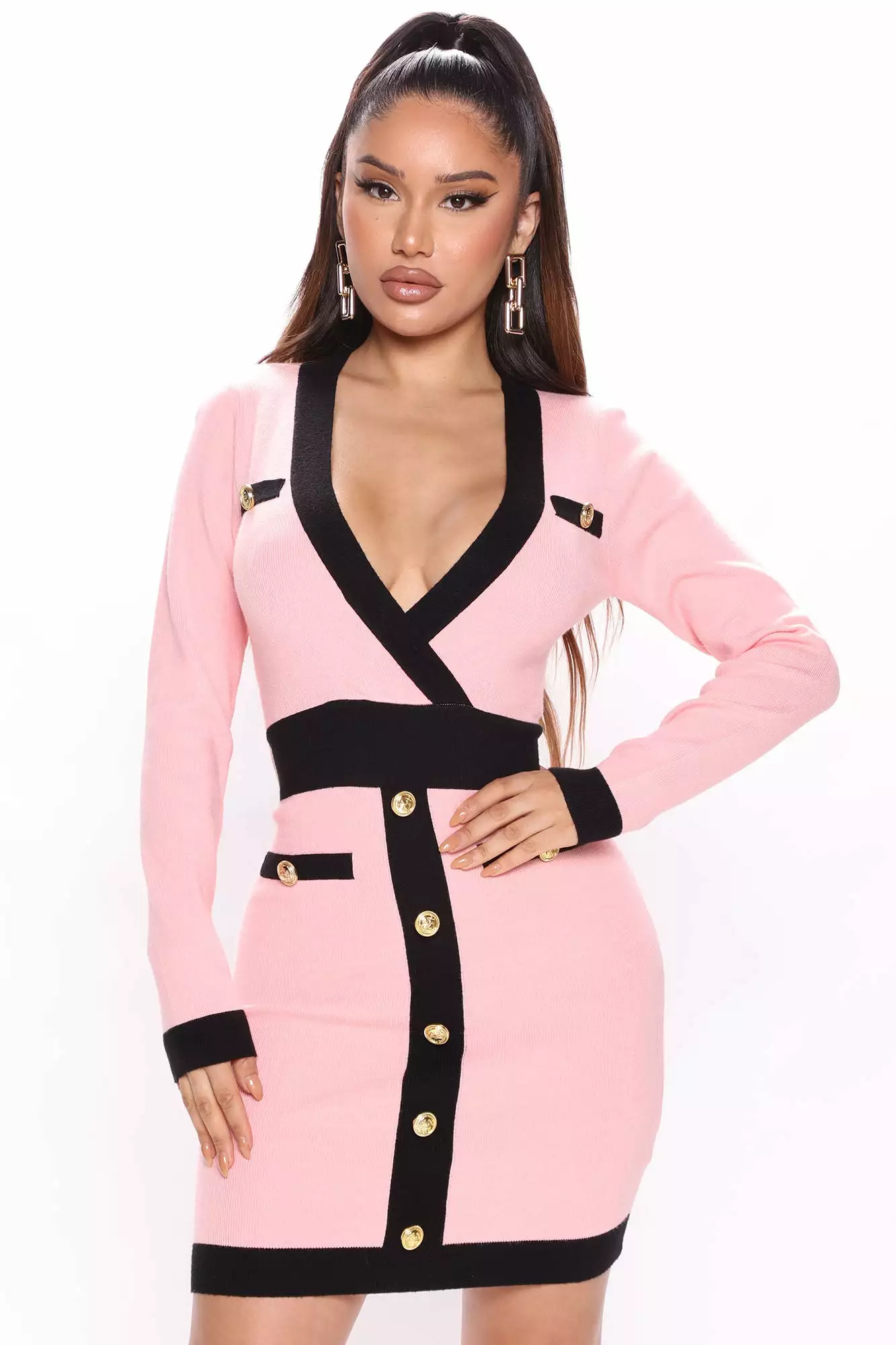 Fashion Nova After Hours Sweater Mini Dress – Pink