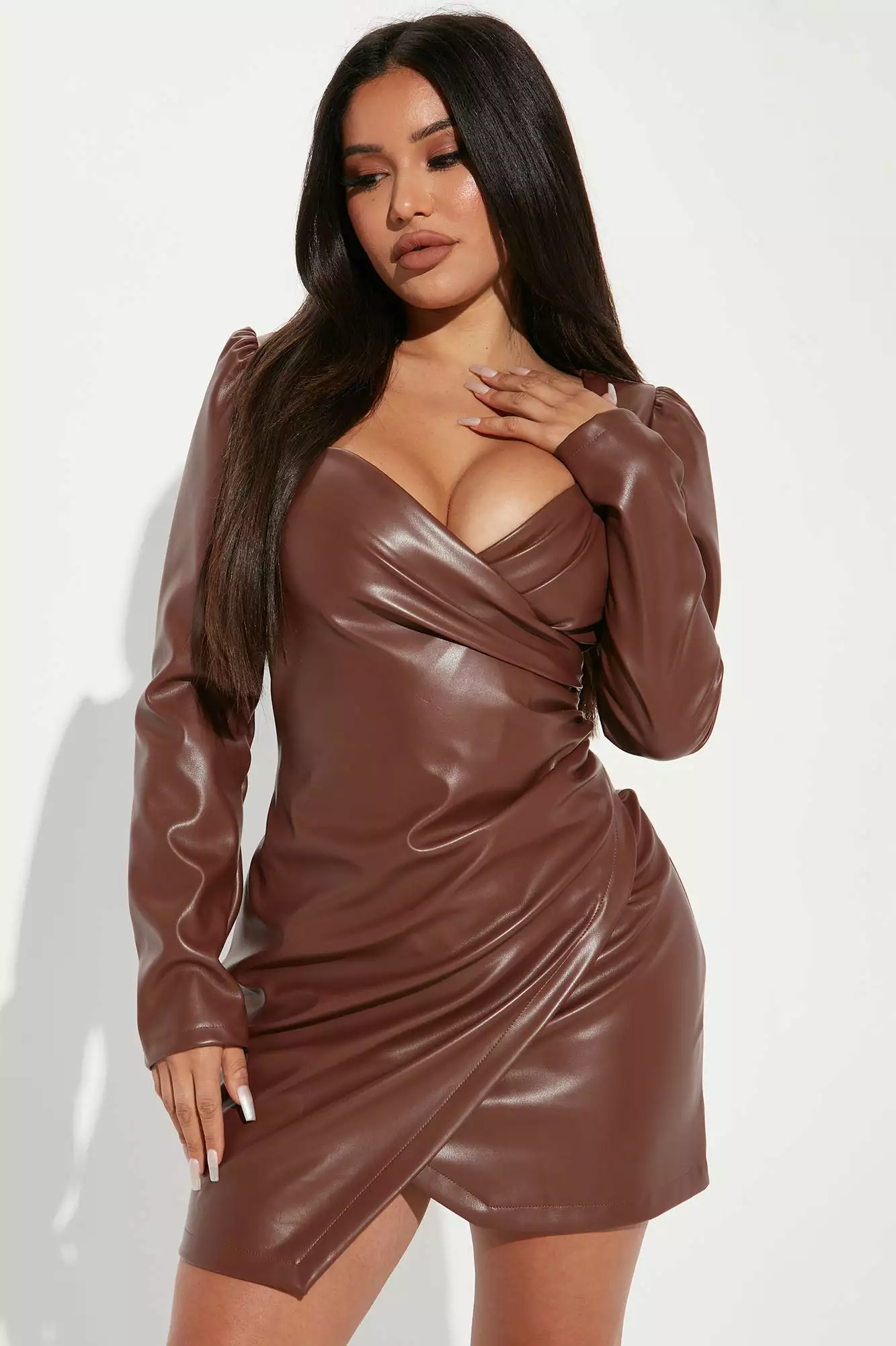 Fashion Nova Airenna Faux Leather Mini Dress – Brown
