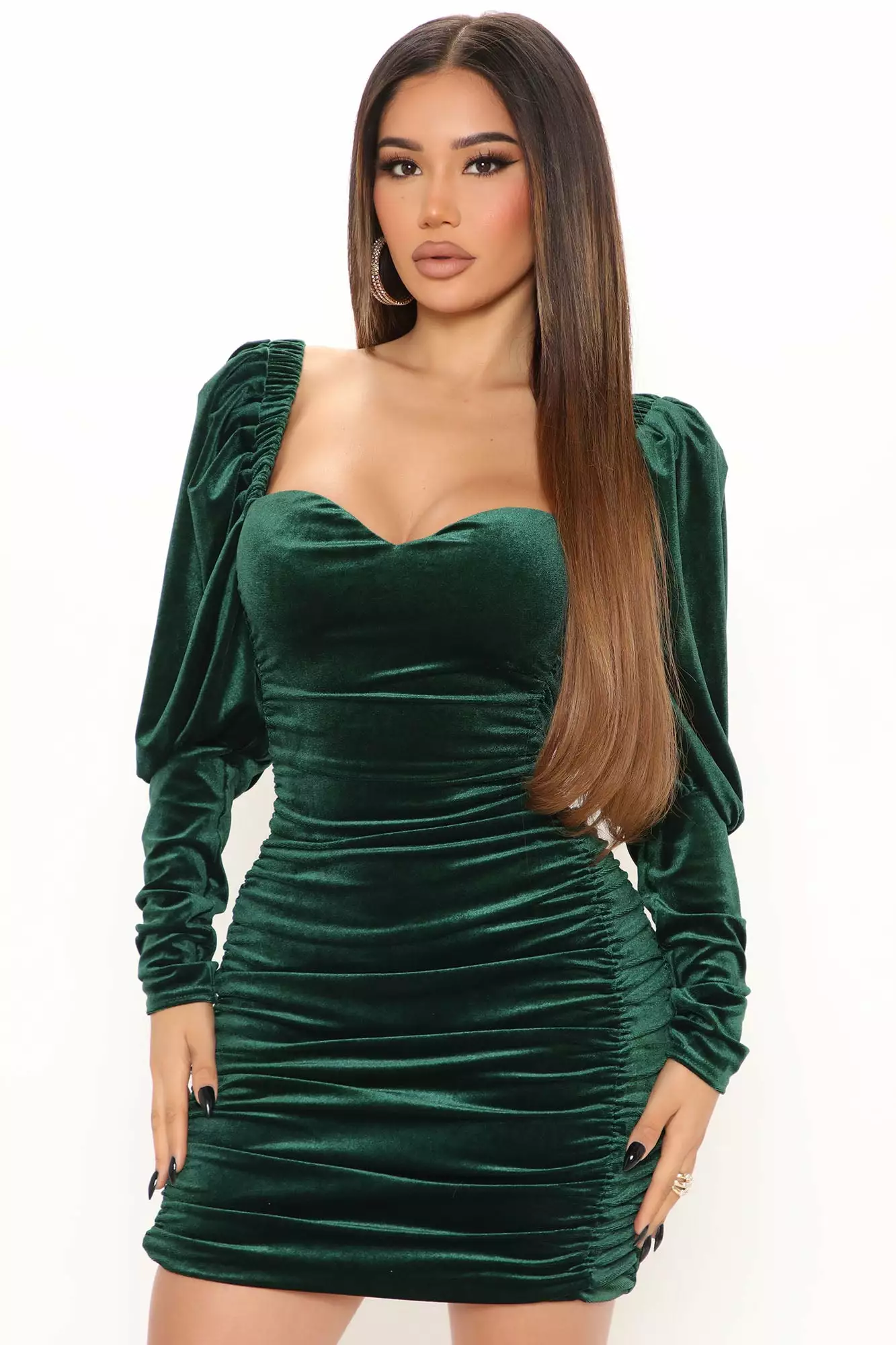 Fashion Nova Alessandra Velvet Mini Dress – Emerald