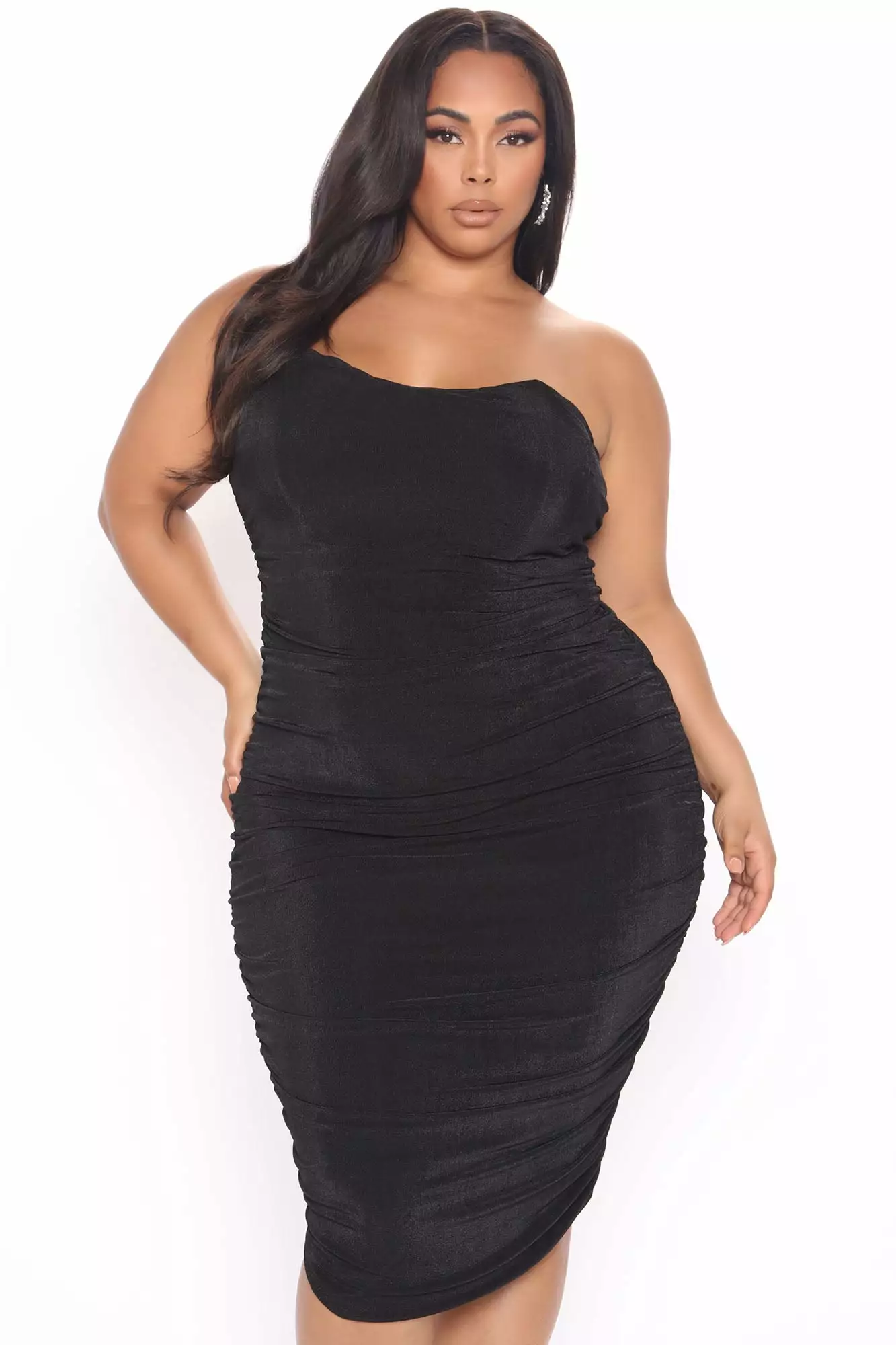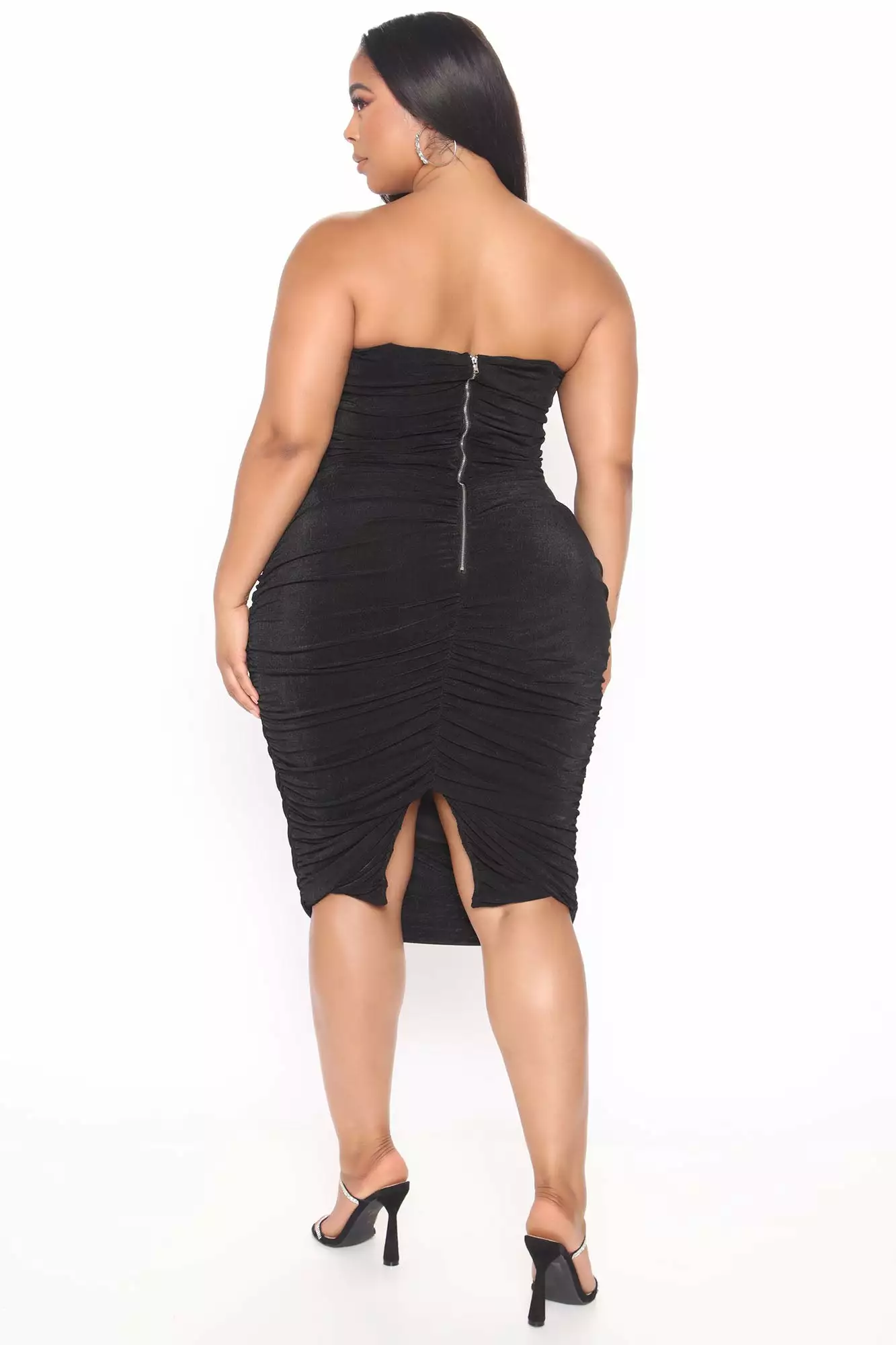 SKU: 1322310041724 Category: Midi Dresses Tags: All Promo, Back in Stock, Club, color:Black, ColorFam-Black, detail:Ruched, Dresses, fallbogo, figure:Plus