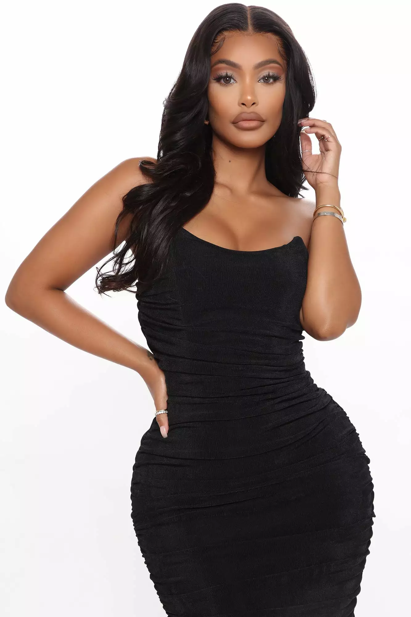 Fashion Nova All Ruched And Ready Midi Dress – Black
