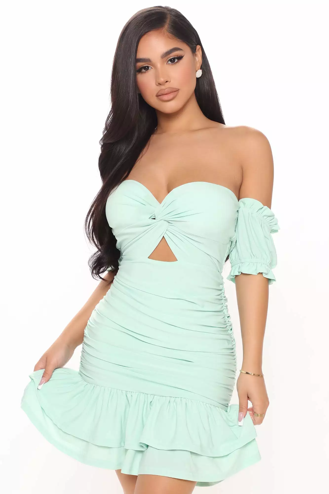 Fashion Nova Alora Ruched Mini Dress – Mint