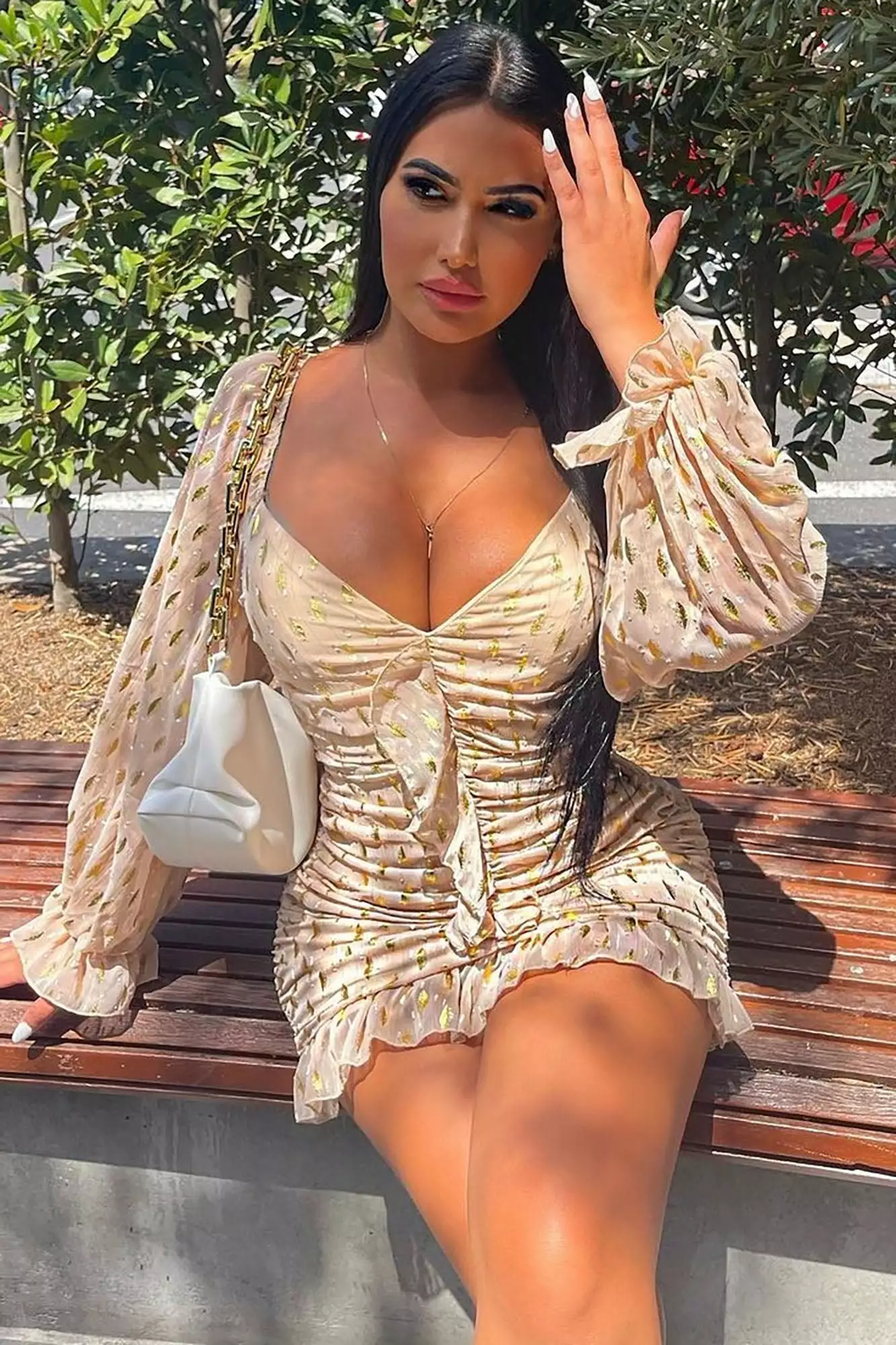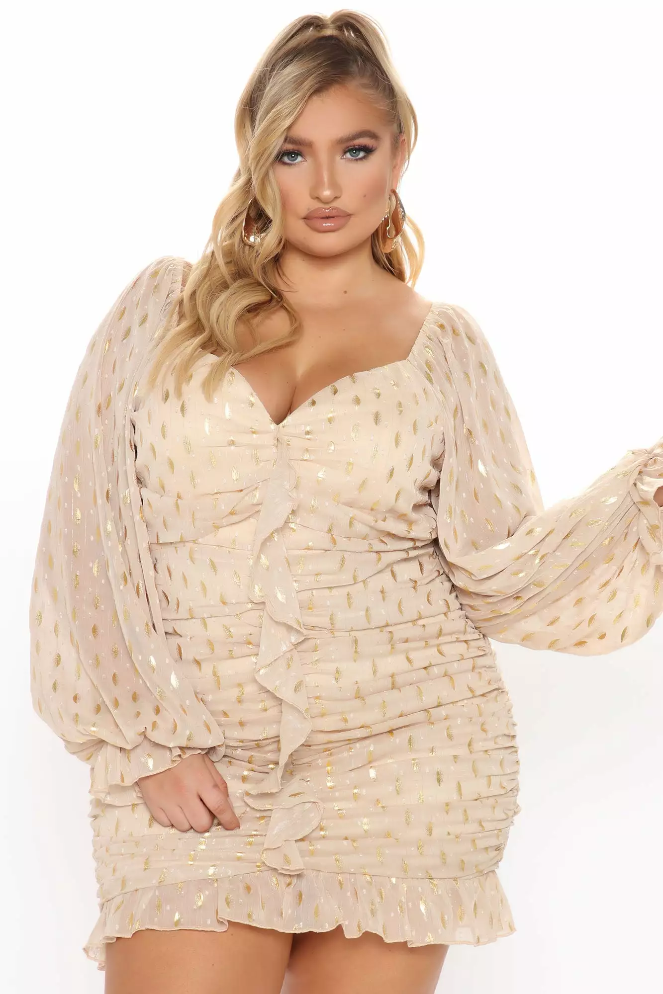 Fashion Nova Always Chasing Ruched Mini Dress – Taupe