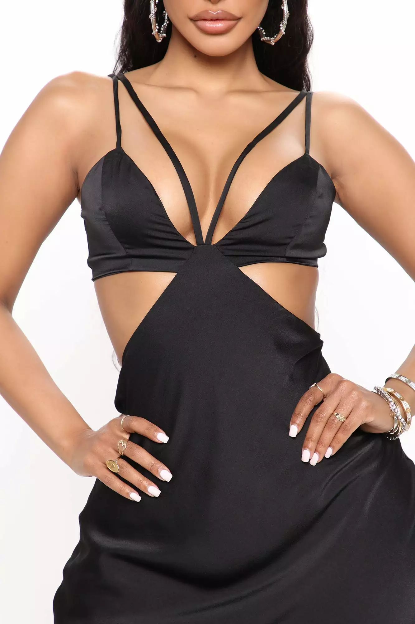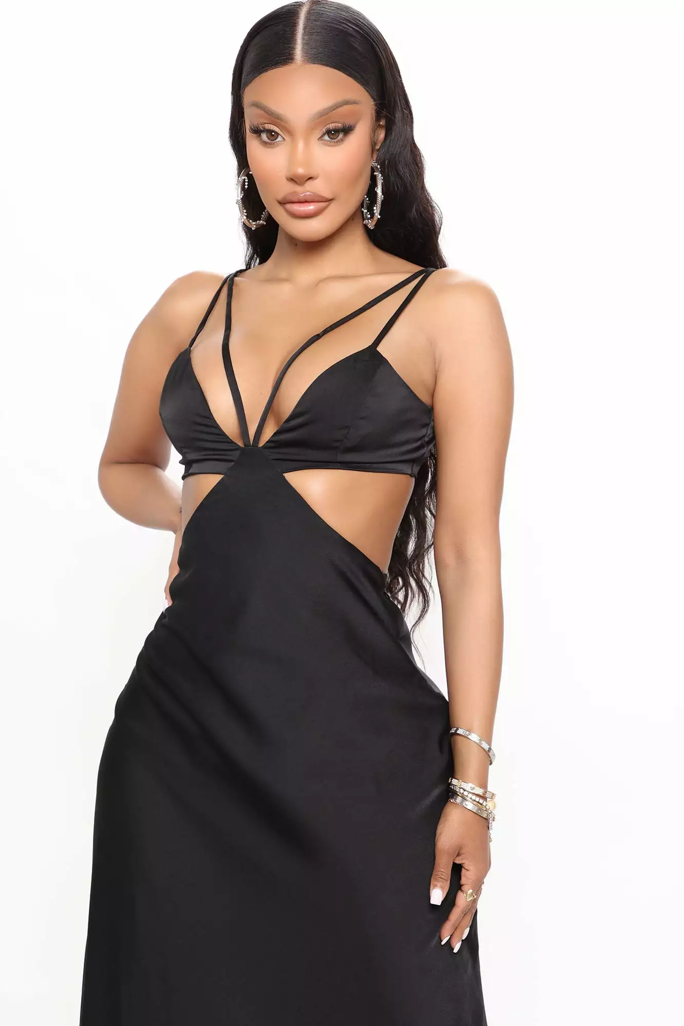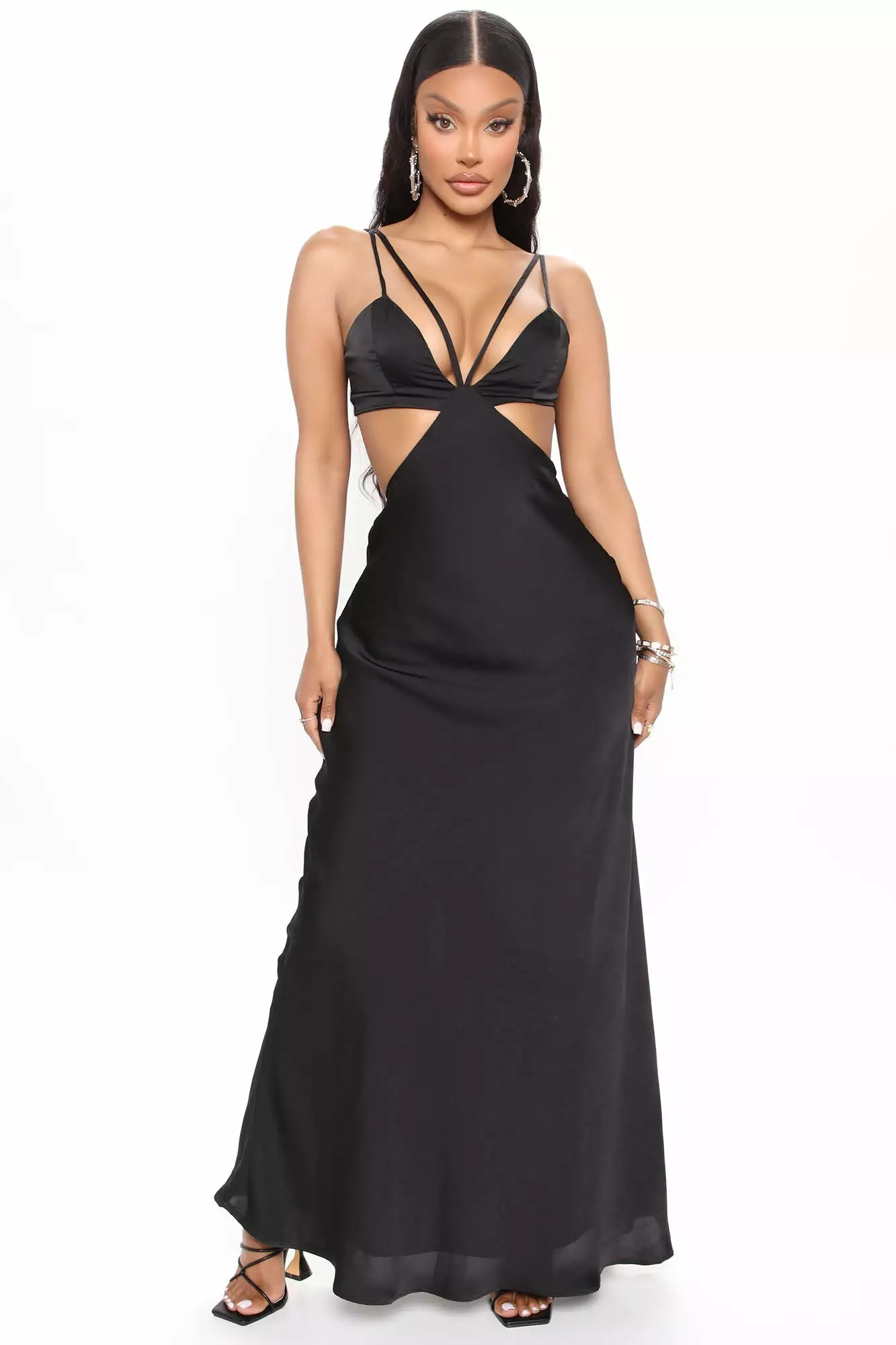 Fashion Nova Alysha Satin Maxi Dress – Black