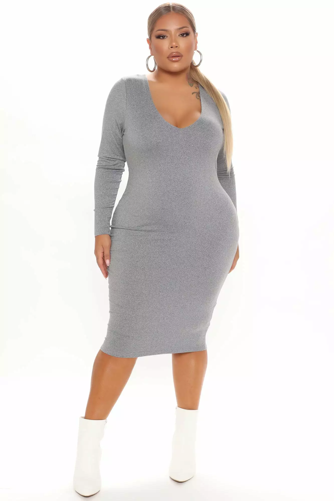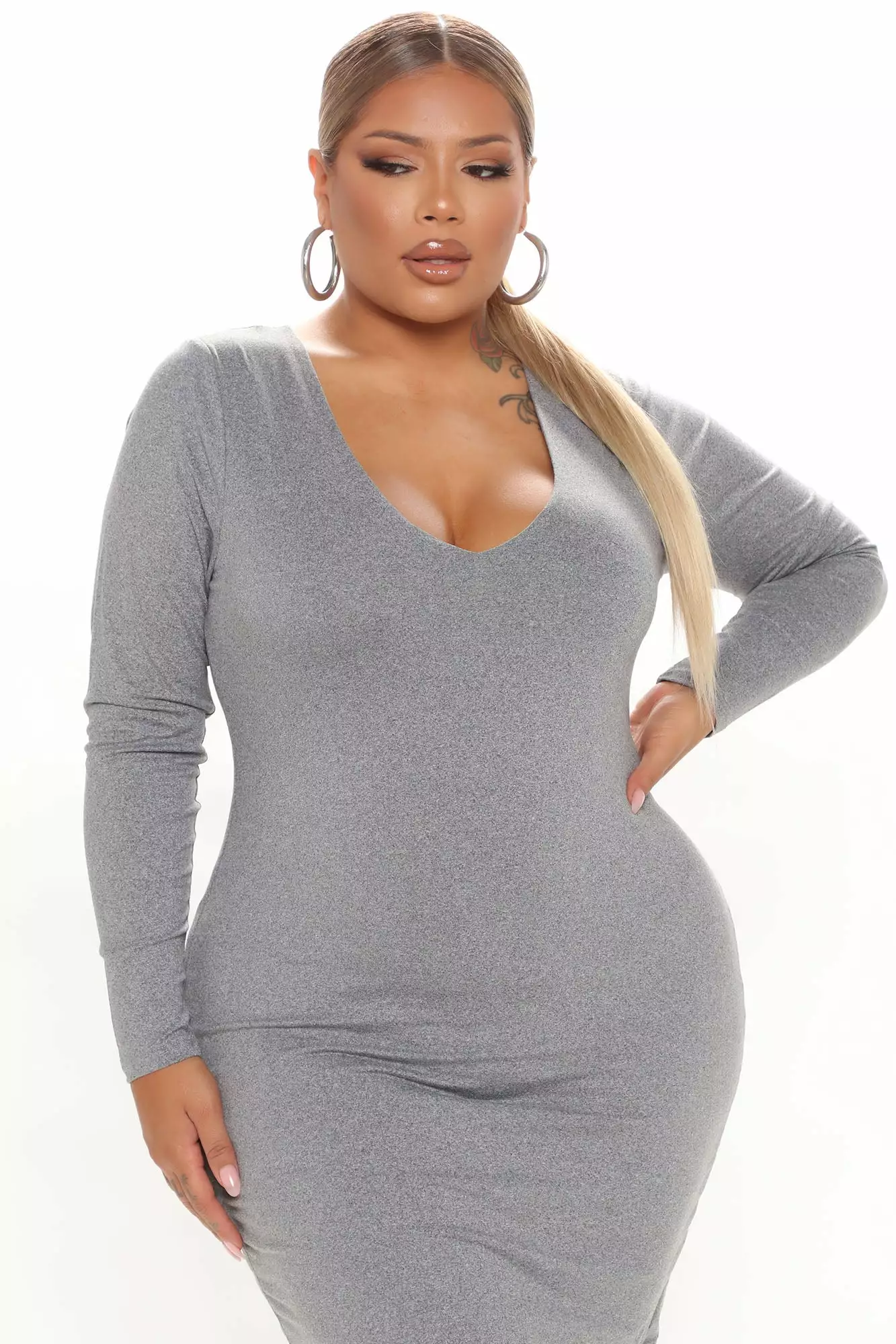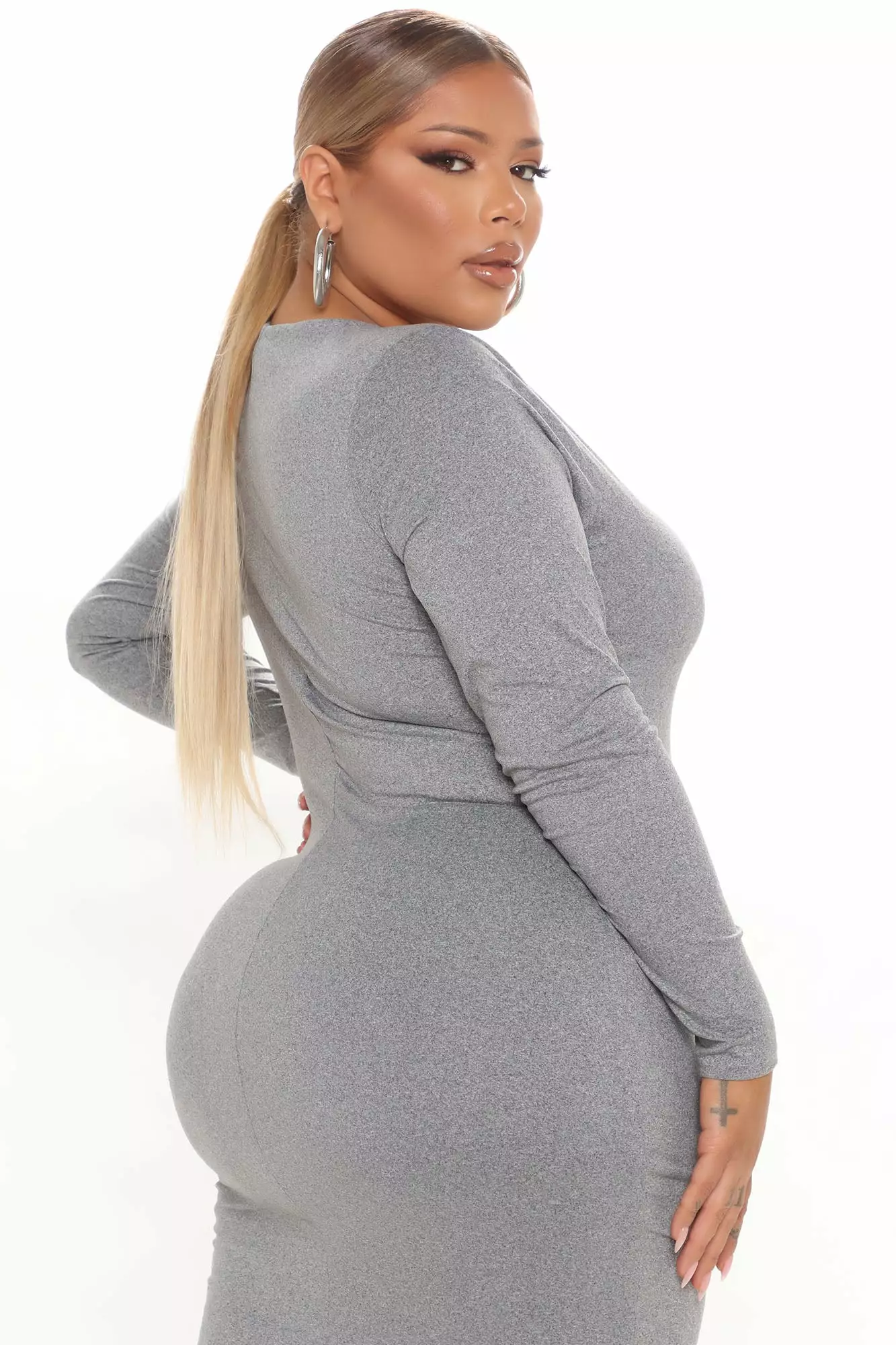 Fashion Nova Amilia Double Lined Midi Dress – Heather Grey