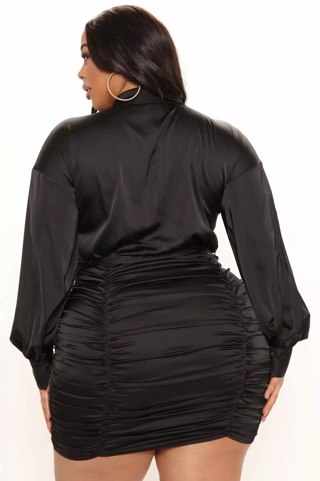 Fashion Nova Annaith Satin Shirt Dress – Black