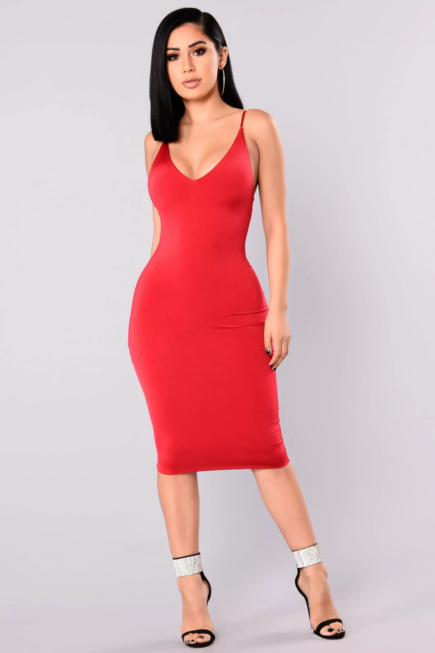 Fashion Nova Anne Marie Midi Dress – Dark Red
