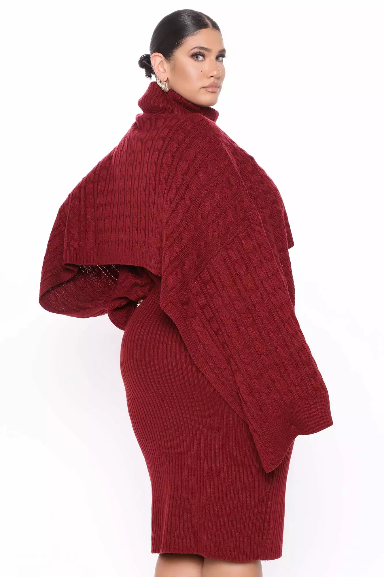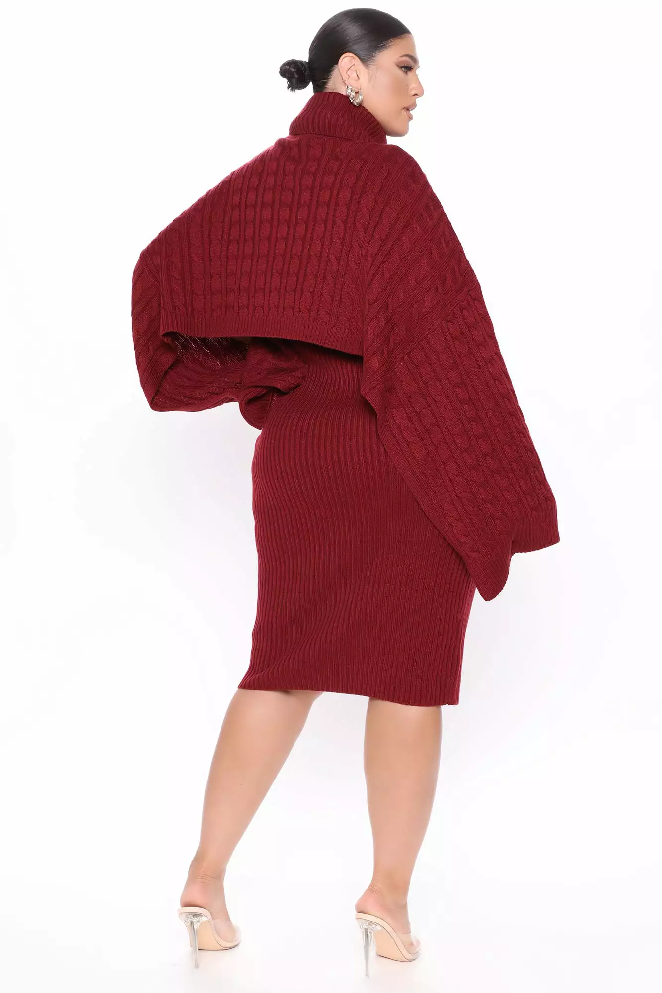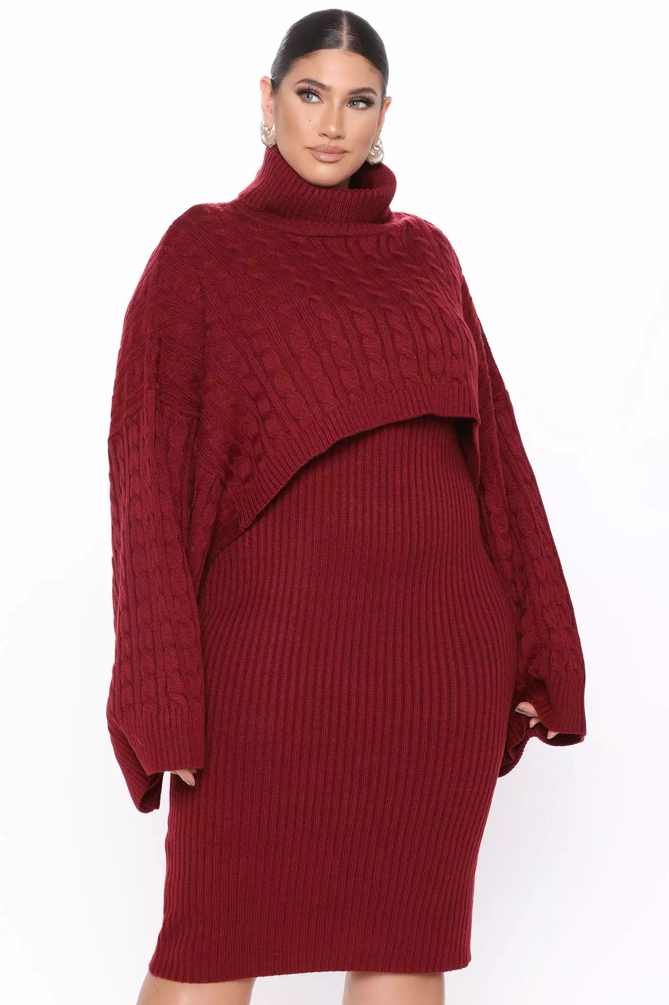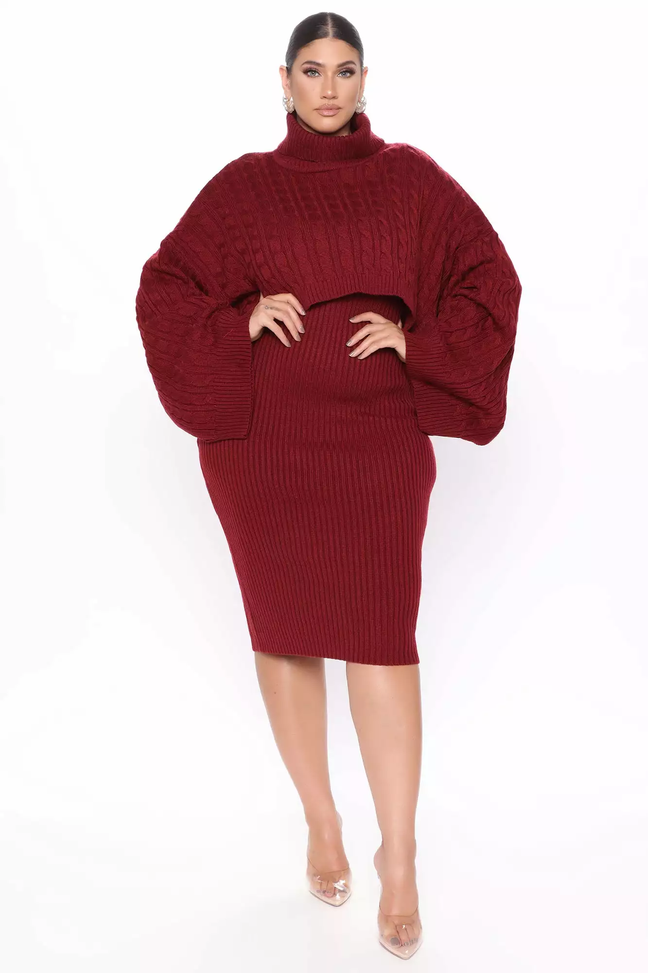 Fashion Nova Another Day Midi Sweater Dress – Burgundy