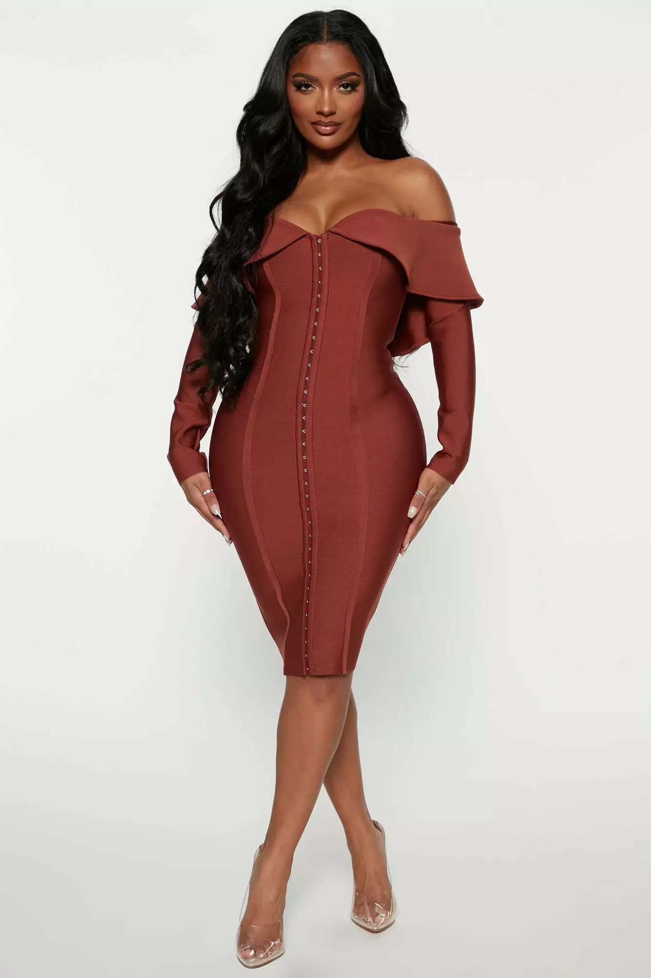SKU: 6537104228476 Category: Midi Dresses Tags: All Promo, atticket, Club, clubdresses, color:Rust, ColorFam-Brown, Dresses, fabric:Bandage, fallbogo