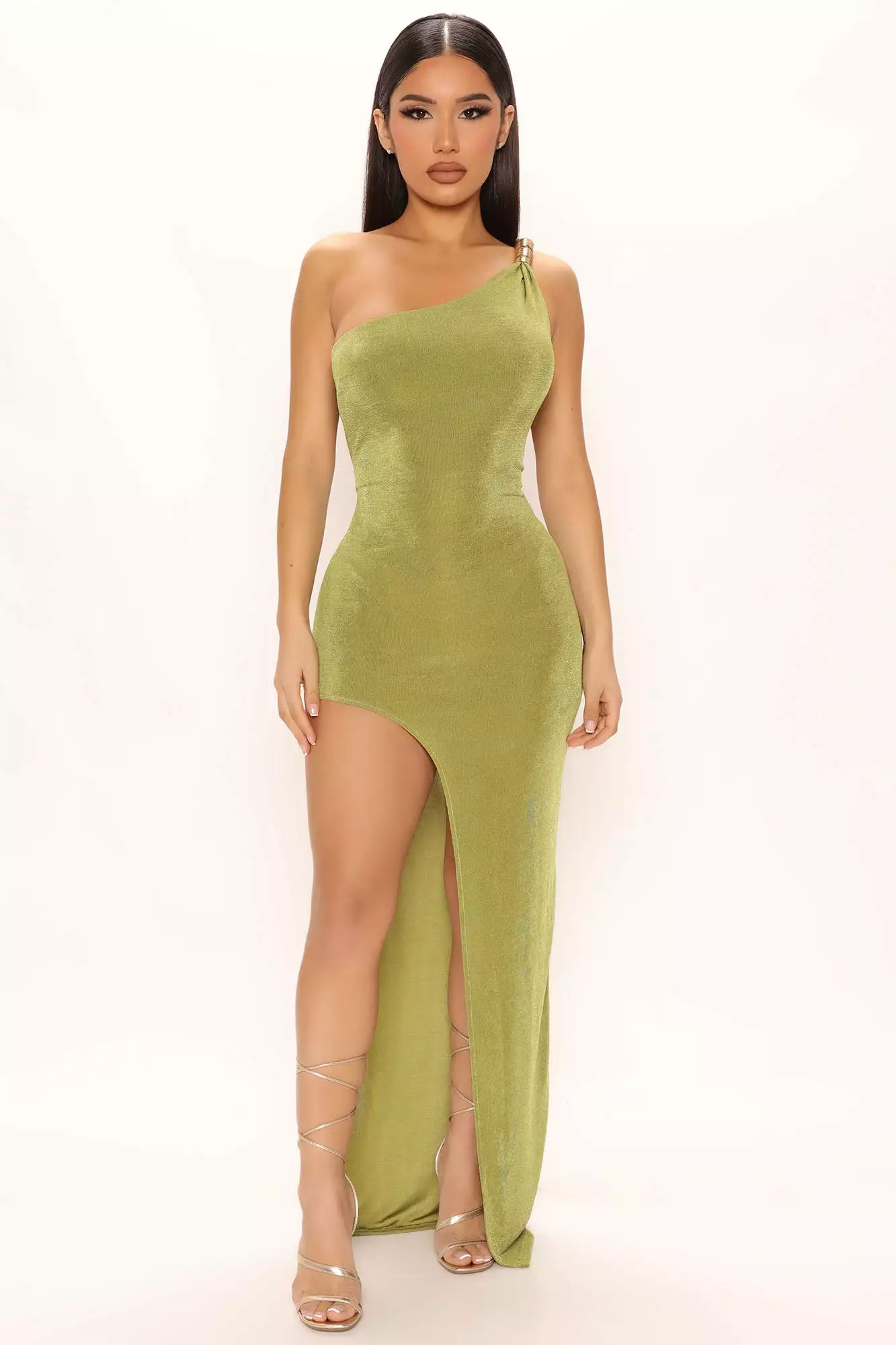 Fashion Nova Be There Slinky Maxi Dress – Chartreuse
