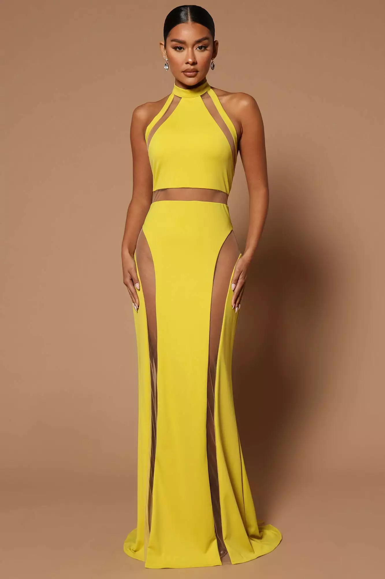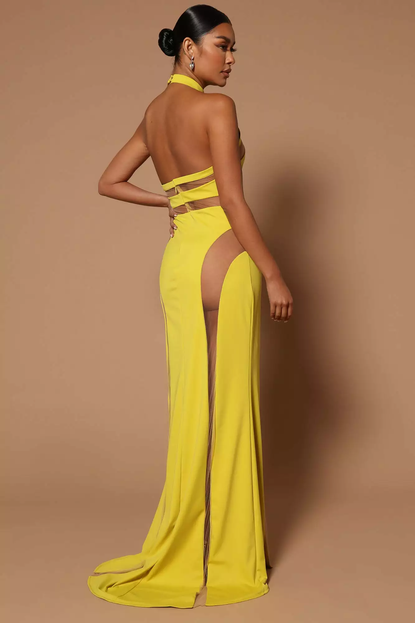 Fashion Nova Beth Mesh Cut Out Maxi Dress – Chartreuse