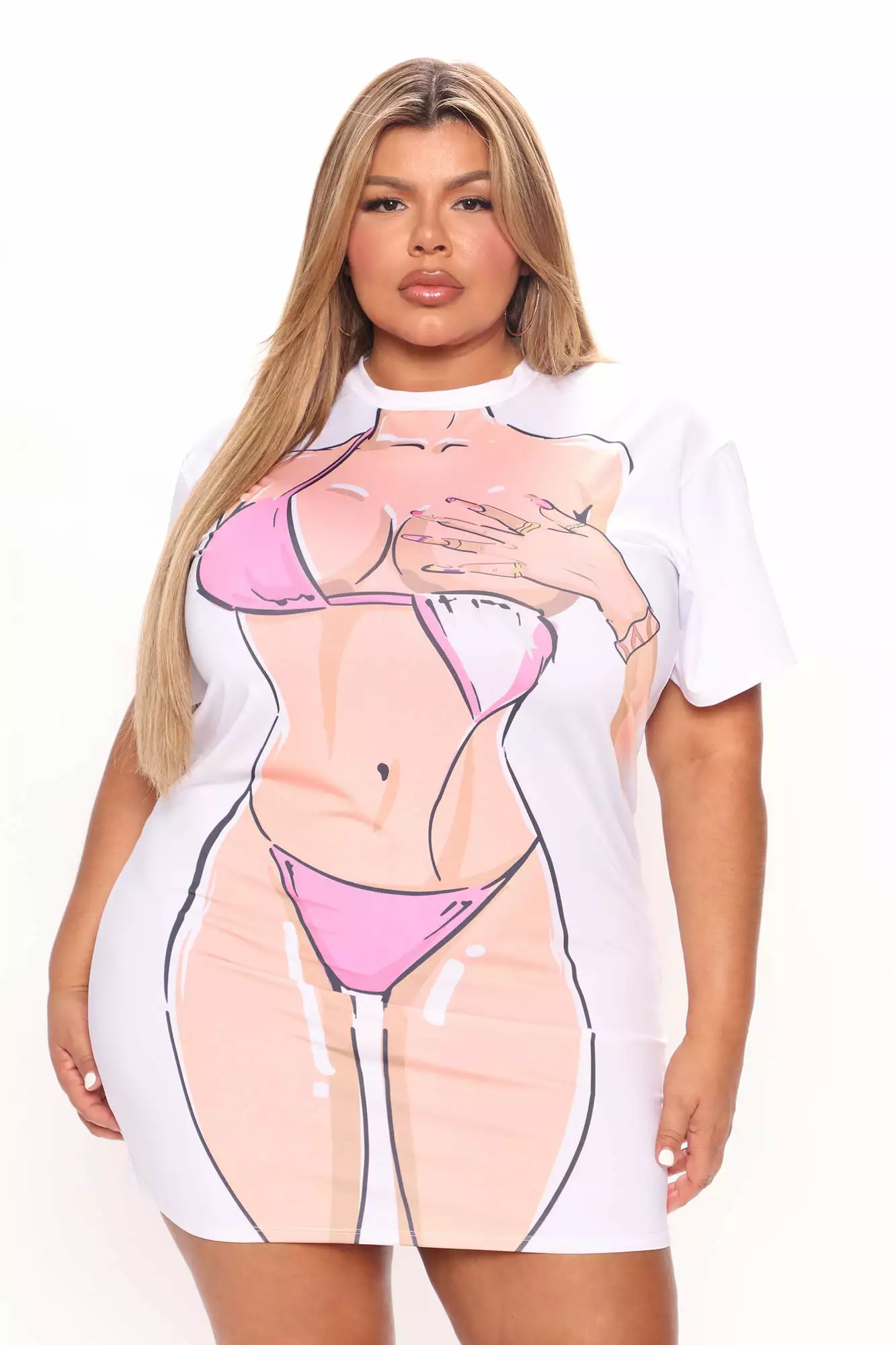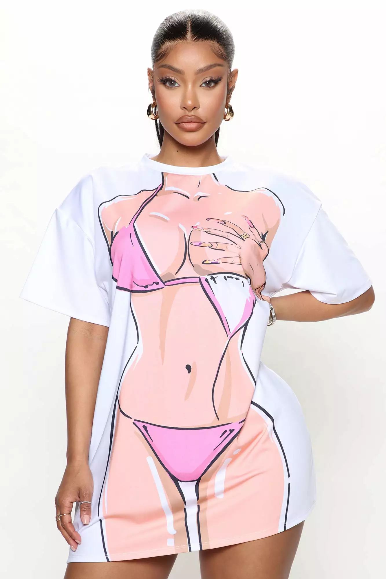 Fashion Nova Bikini Body T-Shirt Dress – White/combo