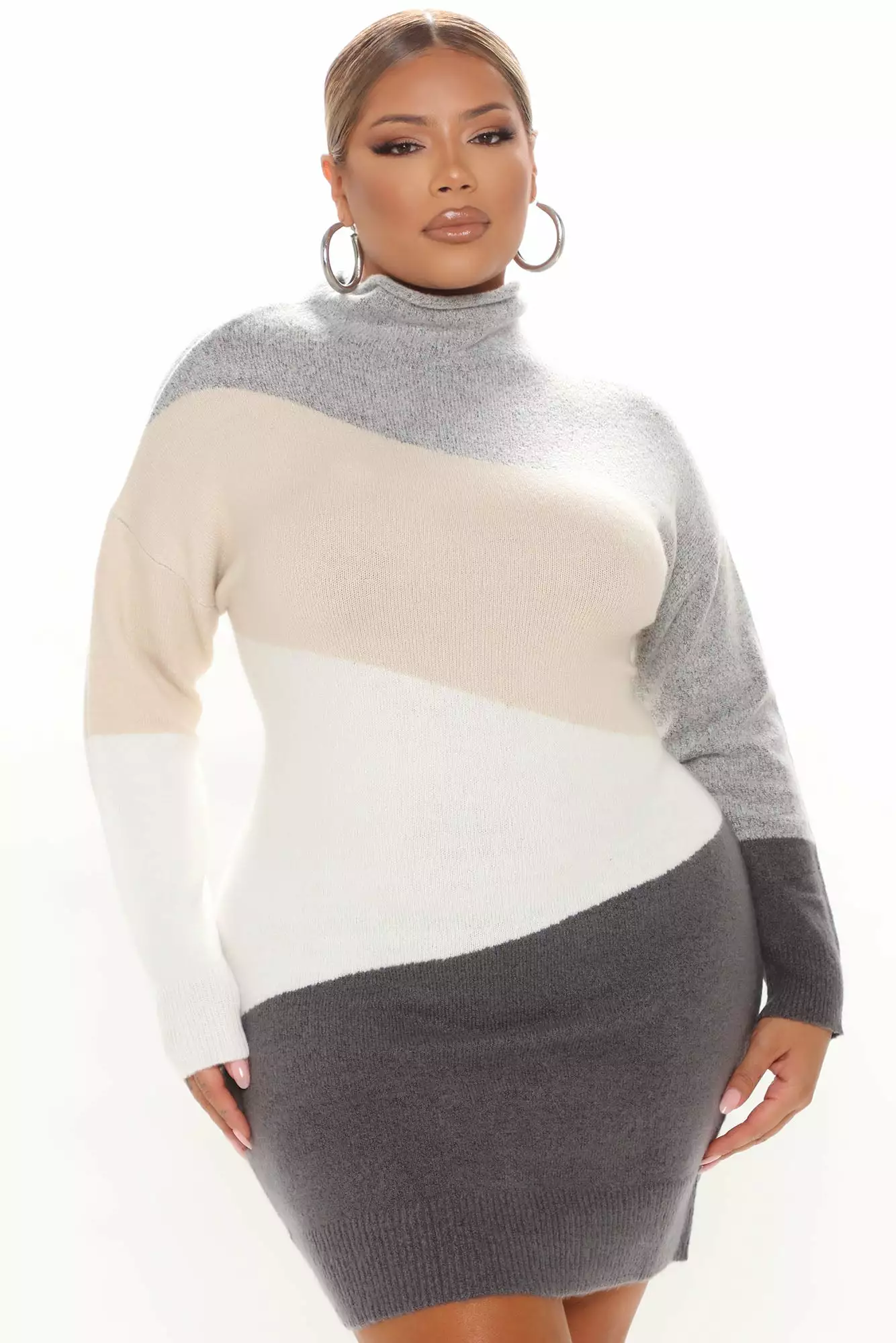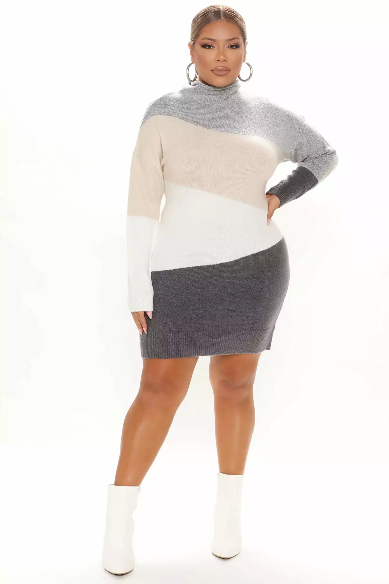 Fashion Nova Blocked Ur Number Sweater Mini Dress – Grey/combo