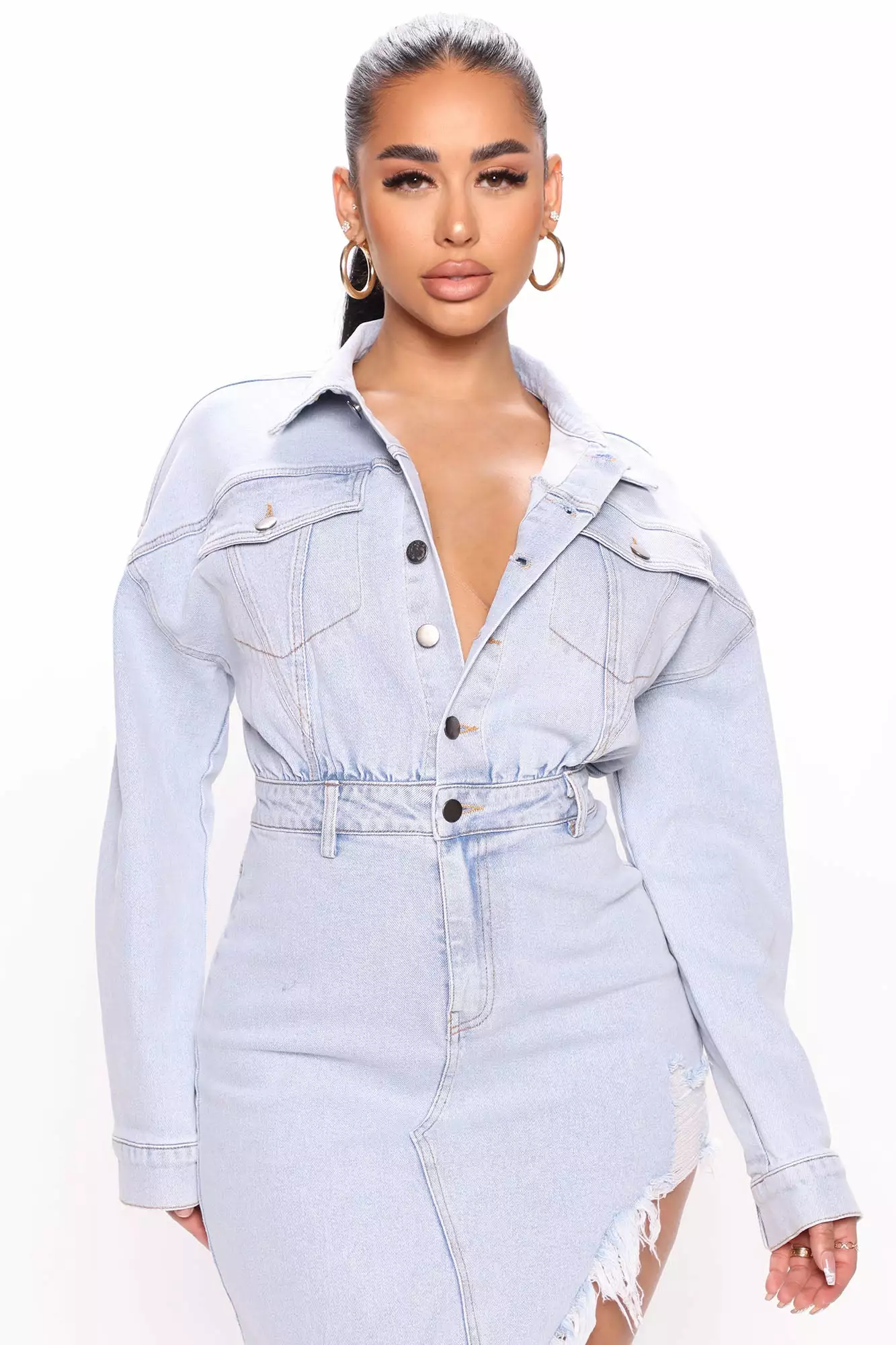 Fashion Nova Blue Jean Denim Midi Dress – Light Wash