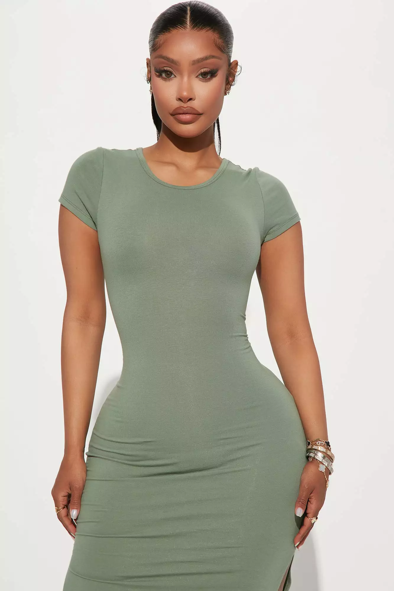 Fashion Nova Bobby Rib Midi Dress – Sage
