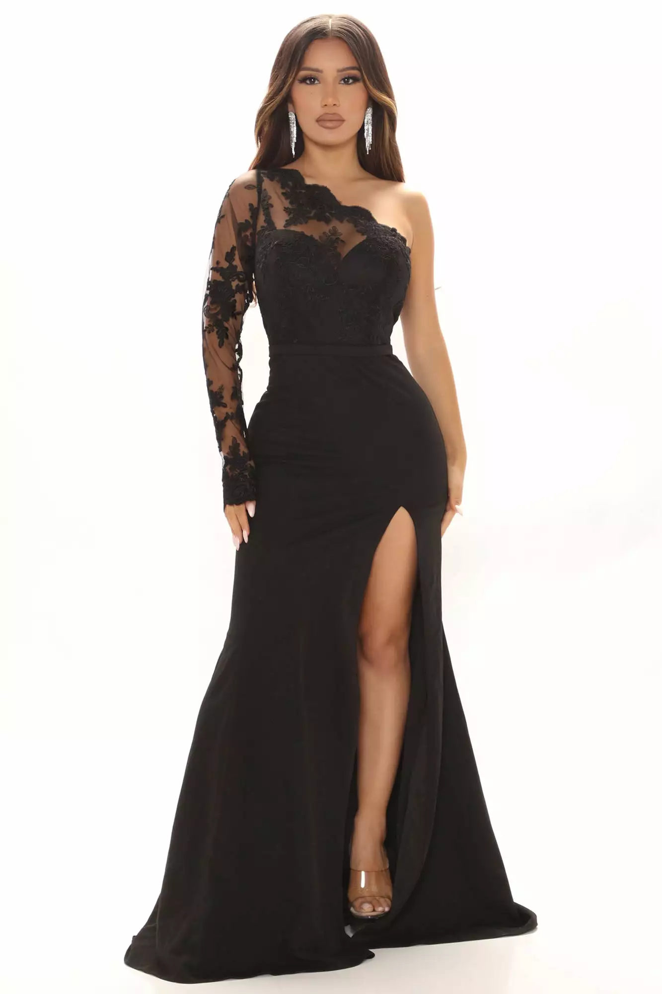 Fashion Nova Bonita Lace Maxi Dress – Black