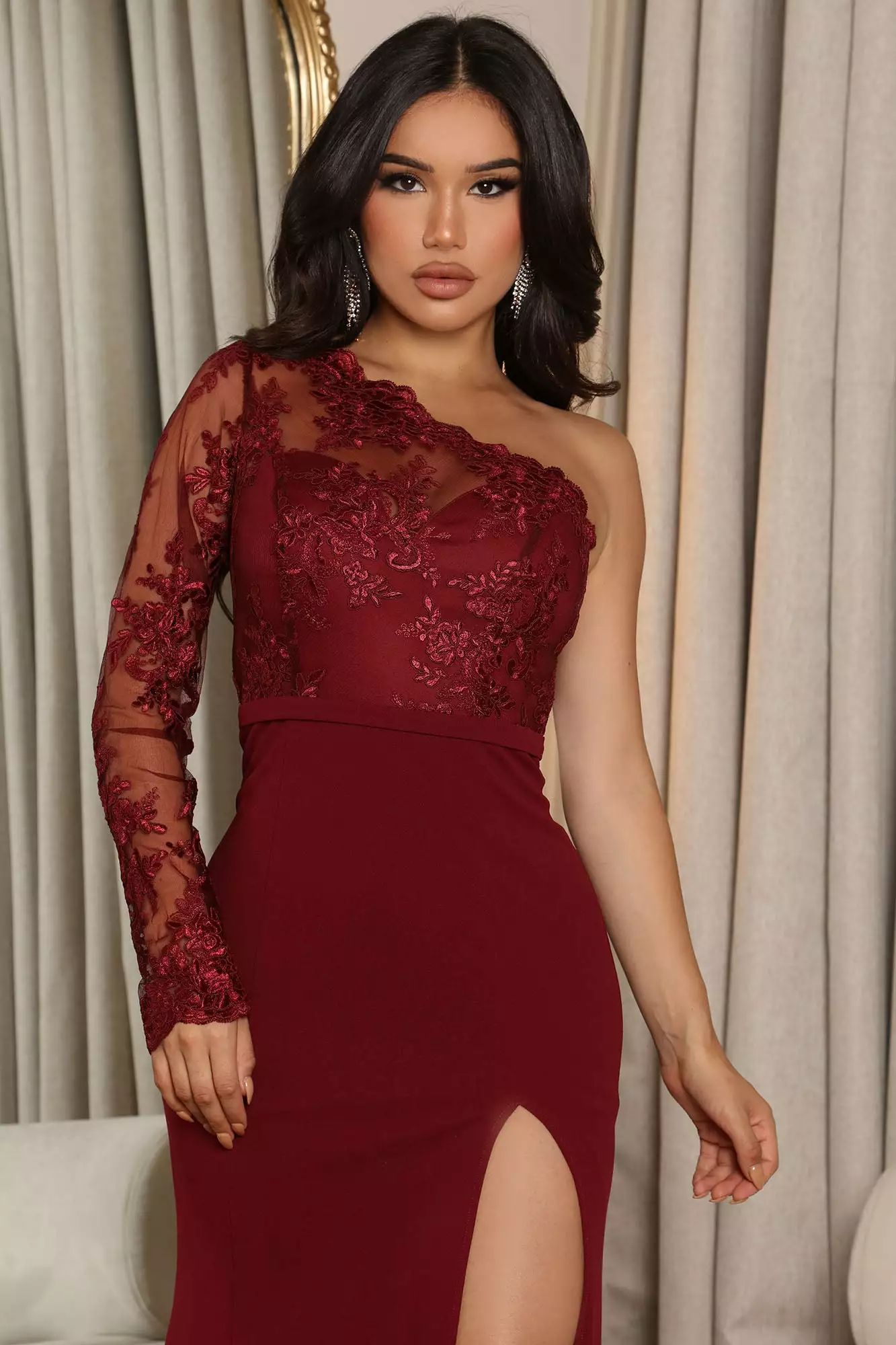 Fashion Nova Bonita Lace Maxi Dress – Burgundy
