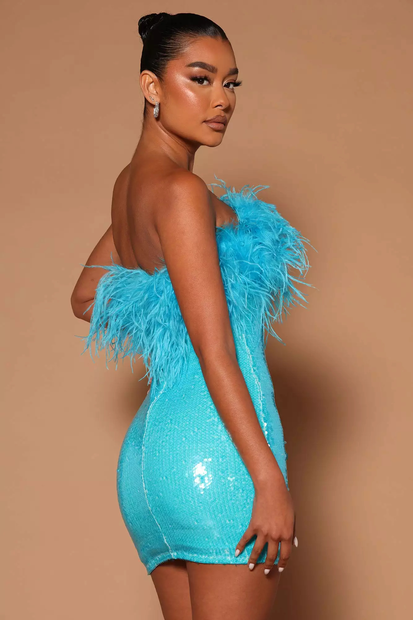 Fashion Nova Brandi Sequin Feather Mini Tube Dress – Turquoise