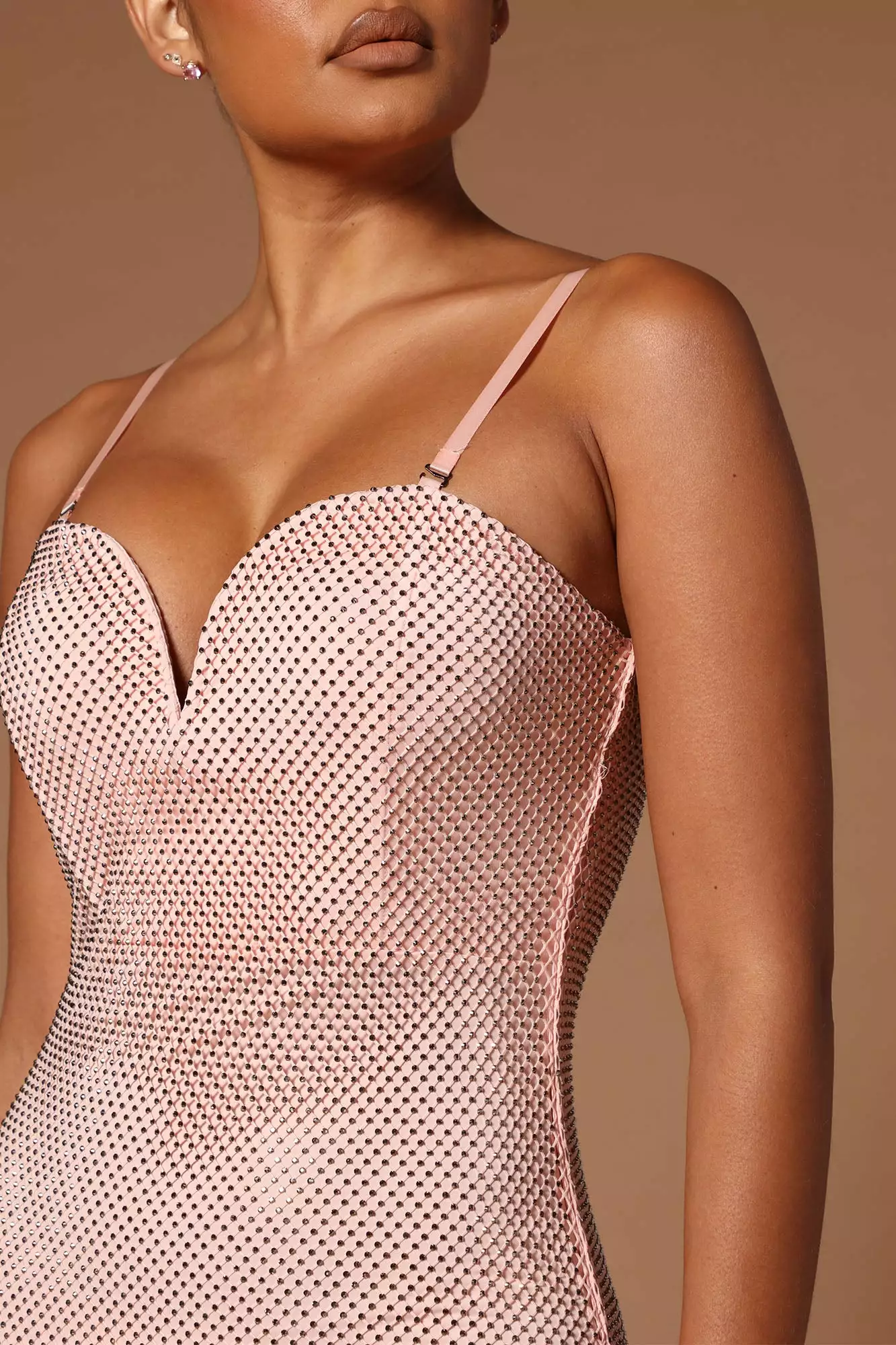 Fashion Nova Brie Embellished Maxi Dress – Nude