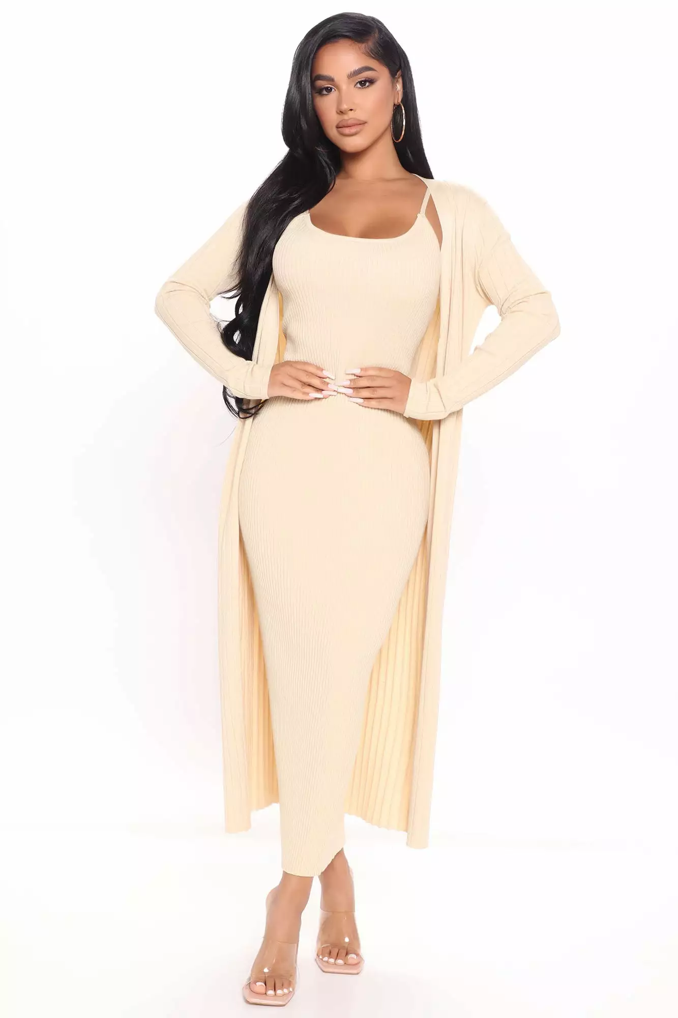 Fashion Nova Briella Sweater Midi Dress Set – Ivory
