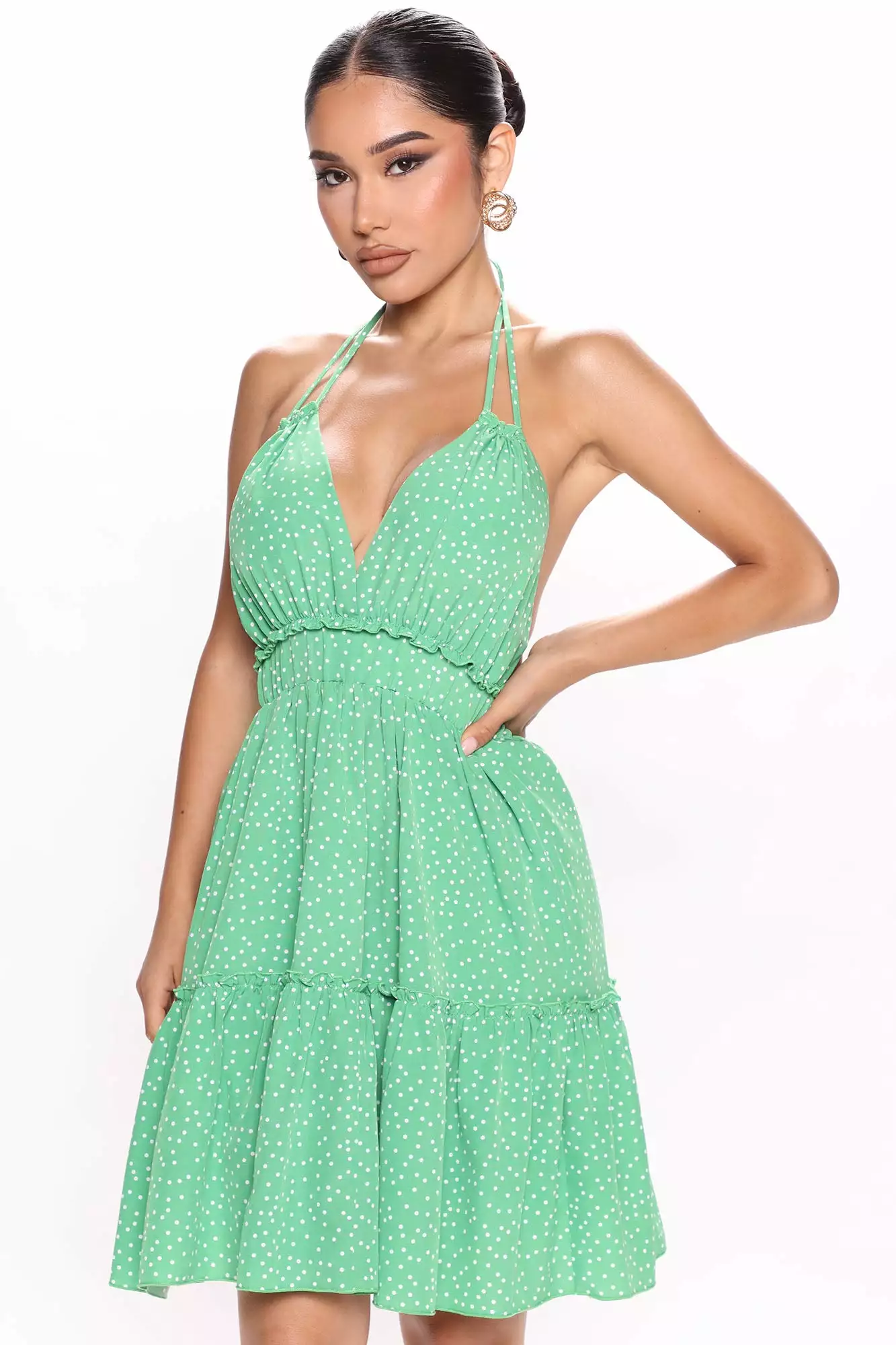 Fashion Nova Brunch Mood Polka Dot Mini Dress – Green/combo