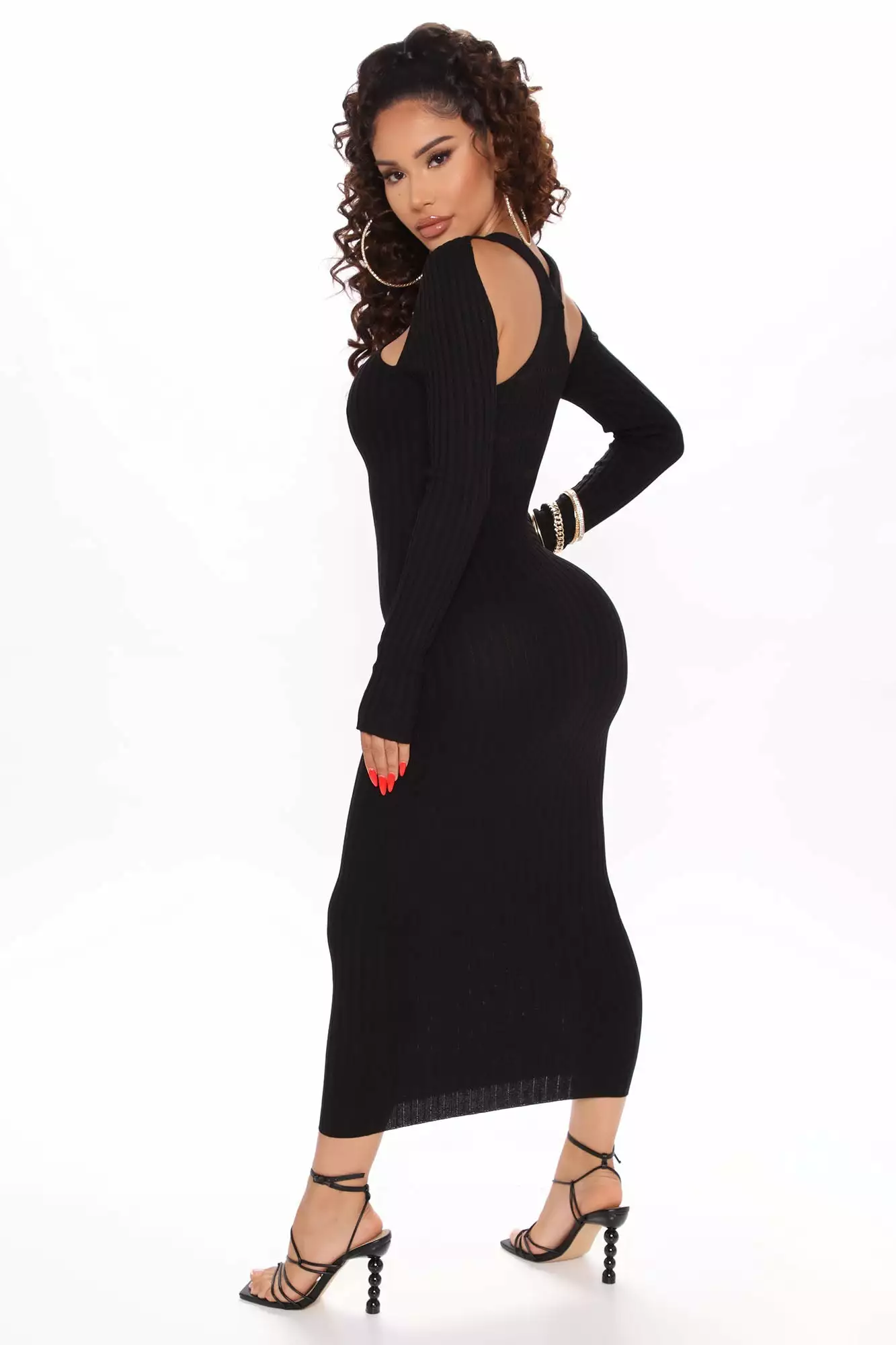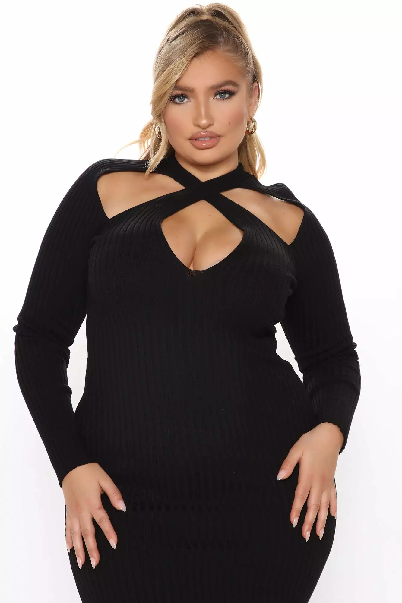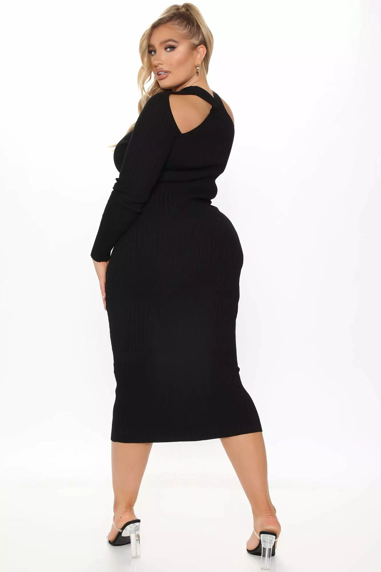 Fashion Nova Caught Looking Sweater Midi Dress – Black