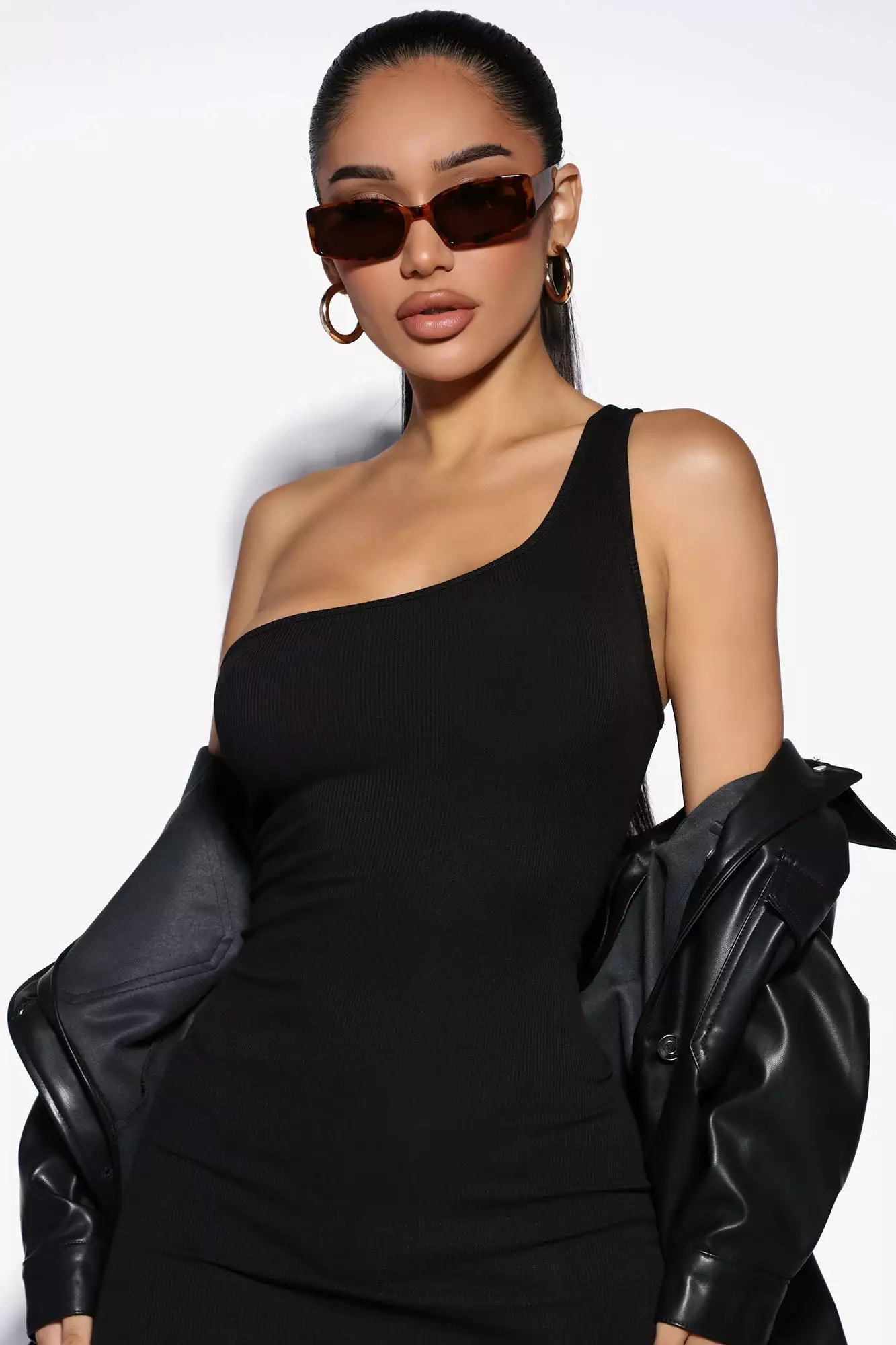 Fashion Nova CeCe One Shoulder Mini Dress – Black