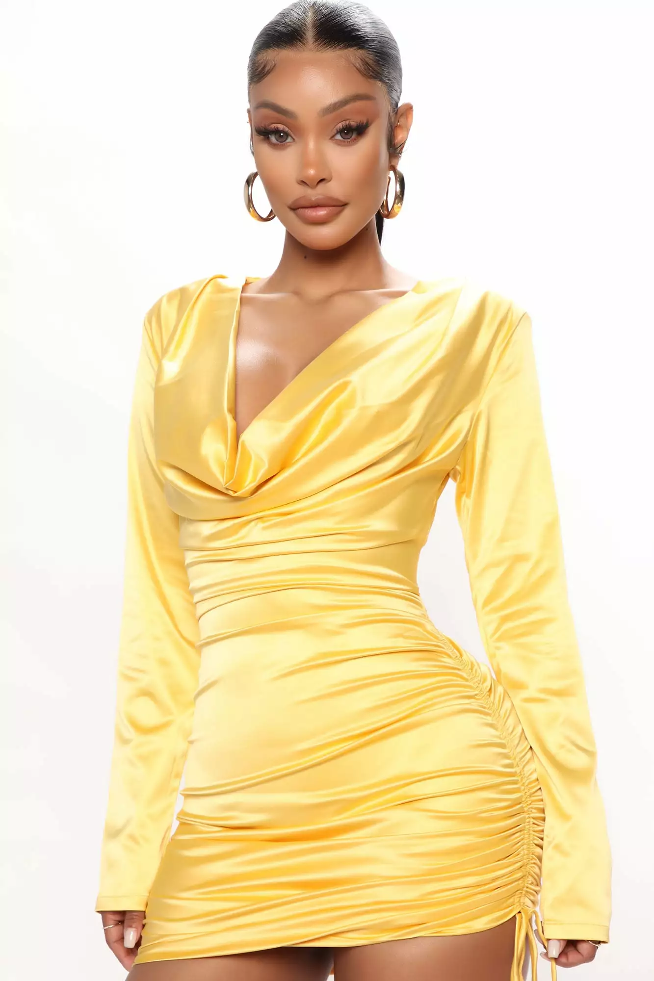 Fashion Nova Champagne Bottles Satin Mini Dress – Yellow