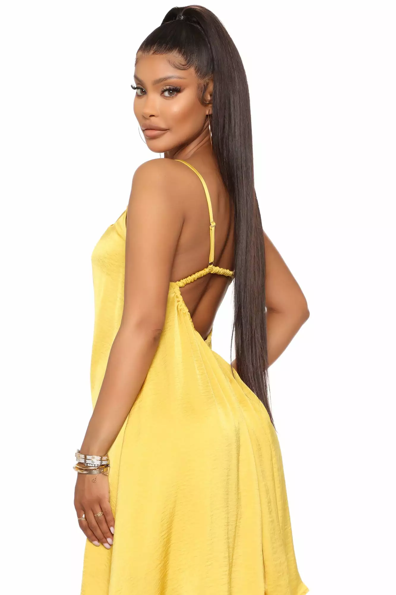 Fashion Nova Claire Satin Mini Dress – Mustard