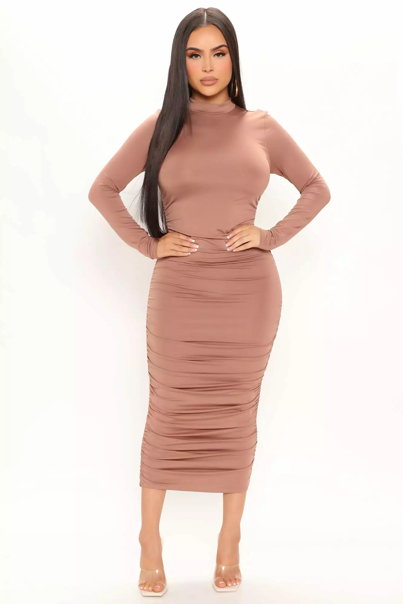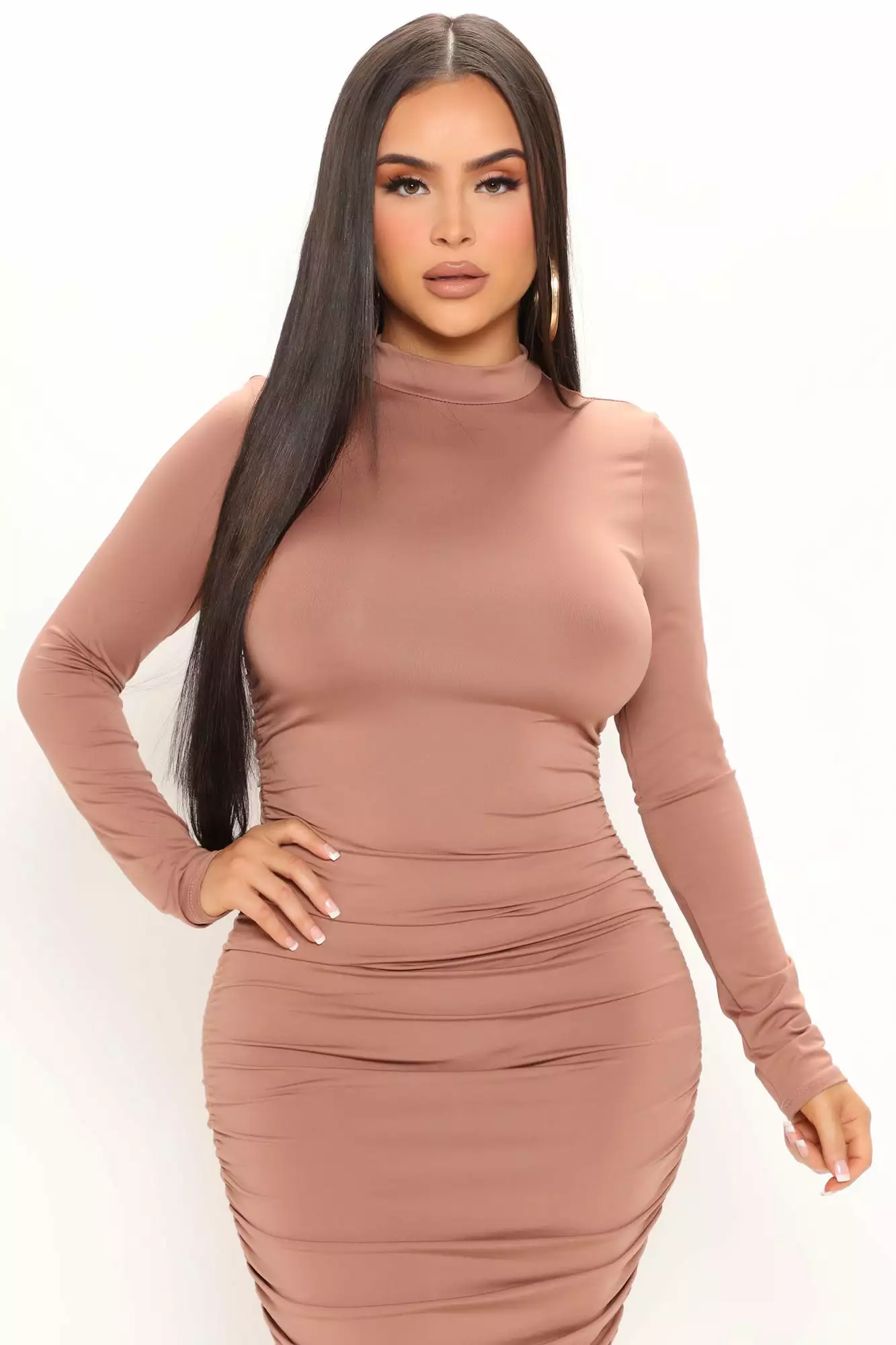 Fashion Nova Cristy Ruched Midi Dress – Chocolate