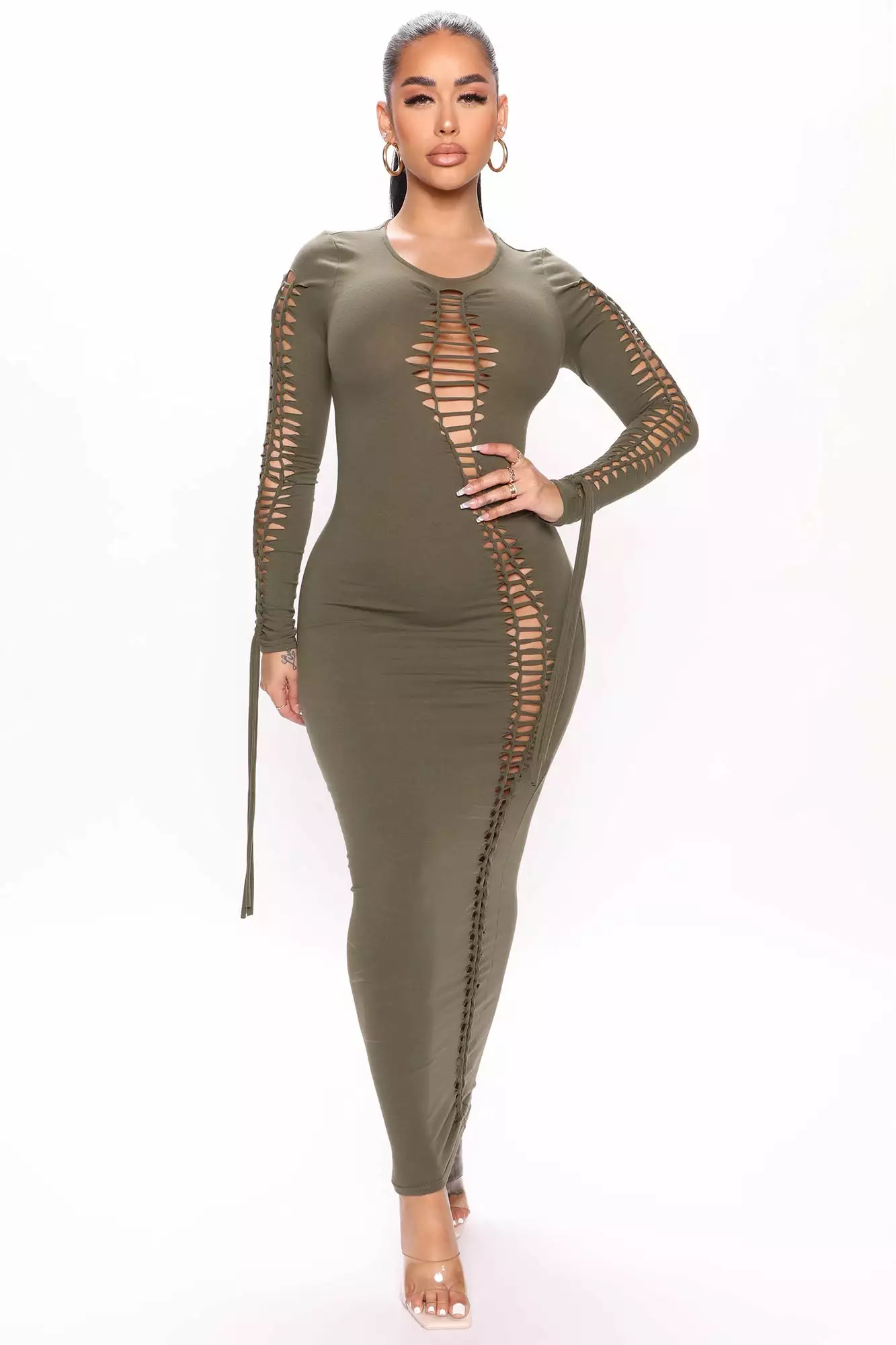 Fashion Nova Cut It Close Maxi Dress – Olive