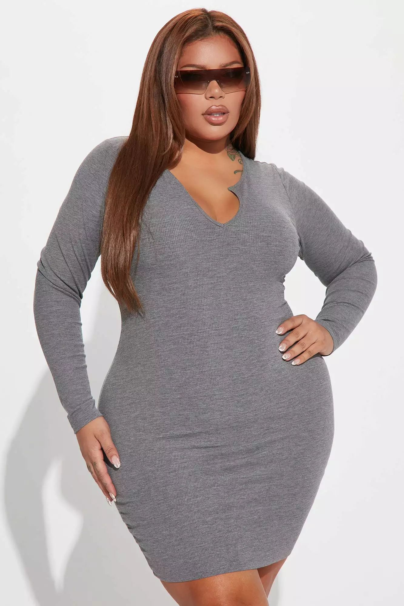 SKU: 6535456227452 Category: Short & Mini Dresses Tags: casualdresses, color:Heather Grey, ColorFam-Gray, Dresses, july4, length:Mini, Long Sleeve, Mini, neckline:V Neck