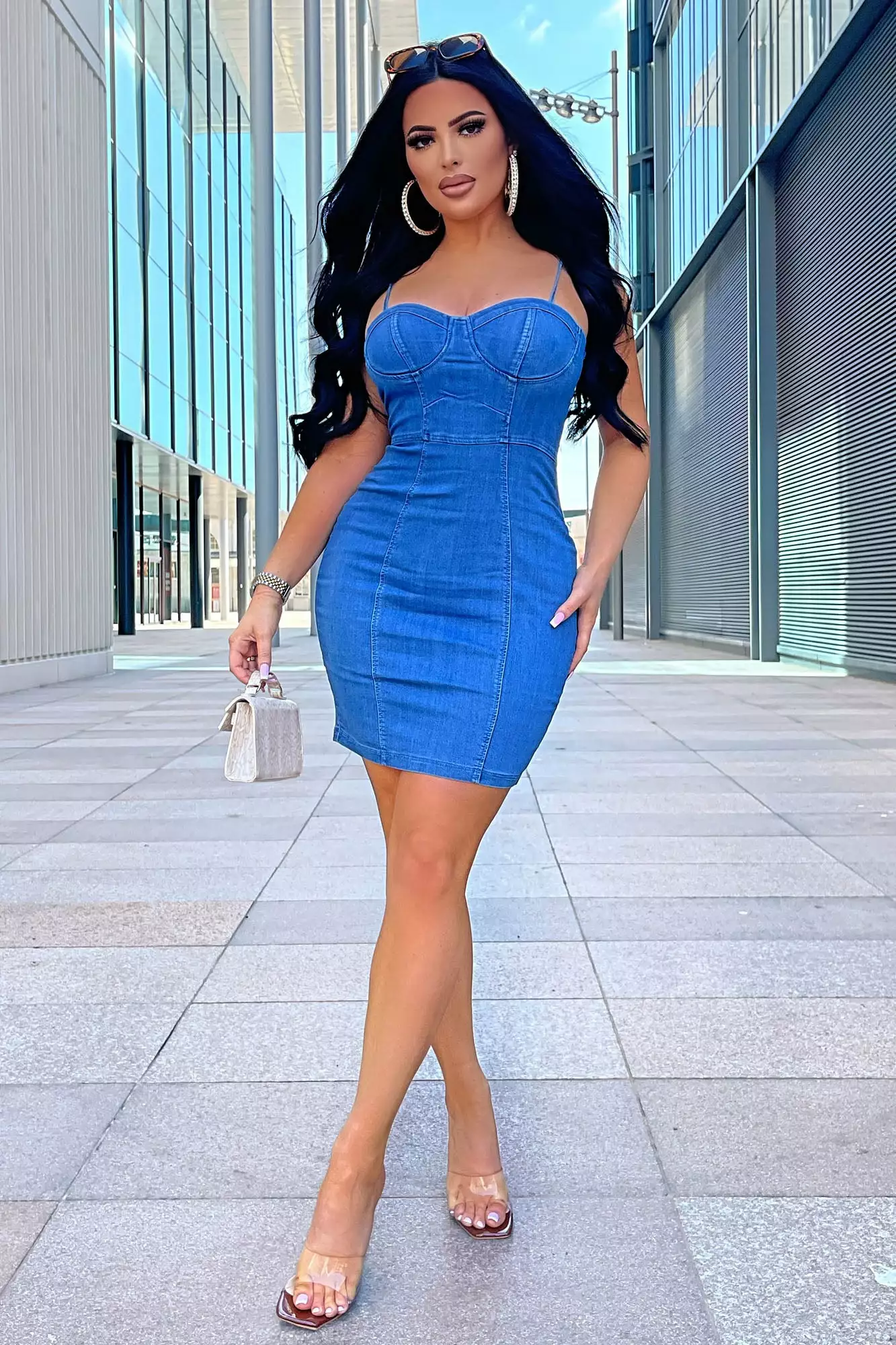 Fashion Nova Day Tripper Denim Mini Dress – Medium Wash