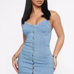 SKU: 1320923496572 Category: Short & Mini Dresses Tags: All Promo, atticket, Back in Stock, casualdresses, color:Medium Wash, ColorFam-None, Dresses, fabric:Denim, fallbogo