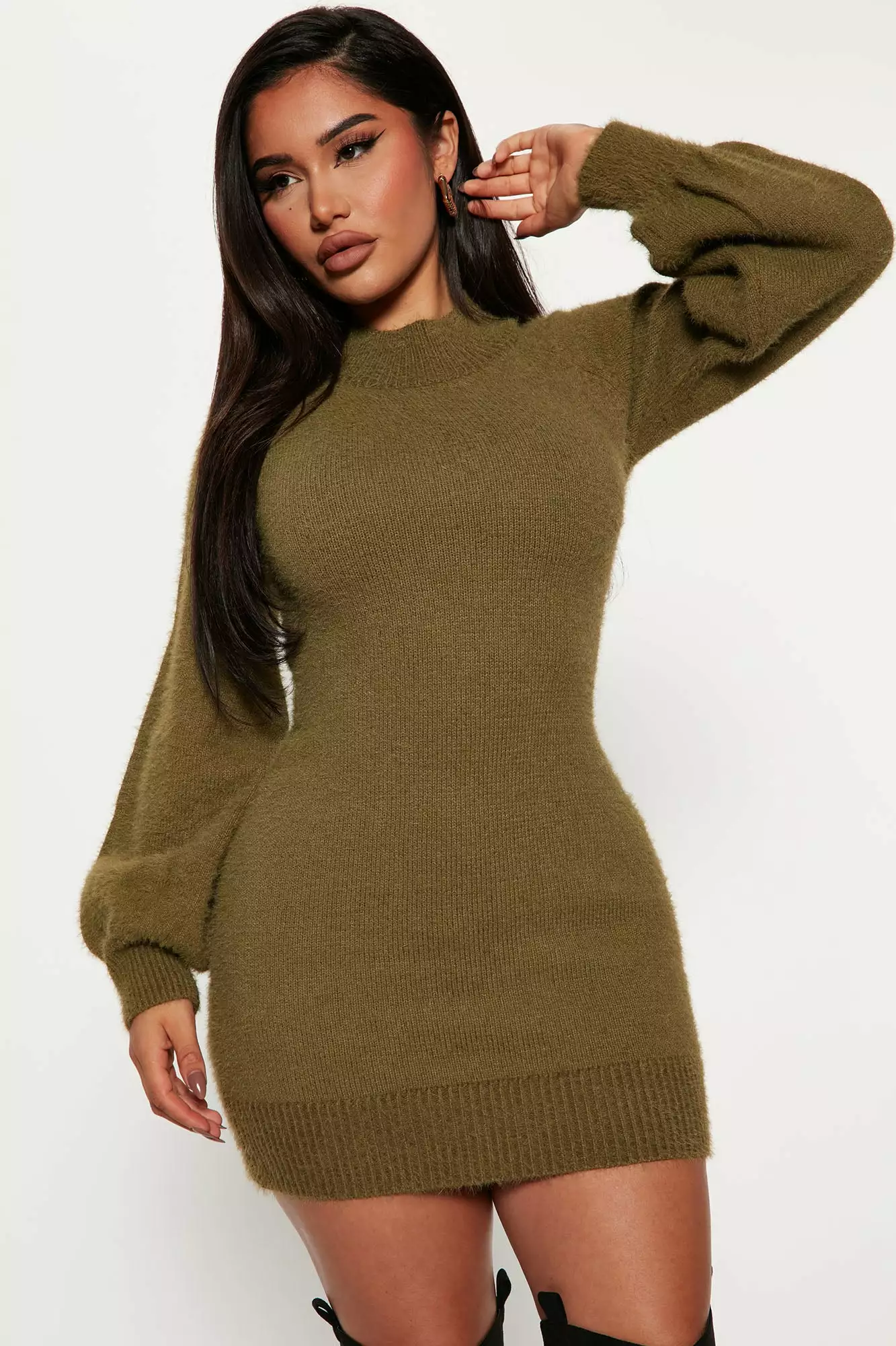 Fashion Nova Decaf Please Sweater Mini Dress – Olive