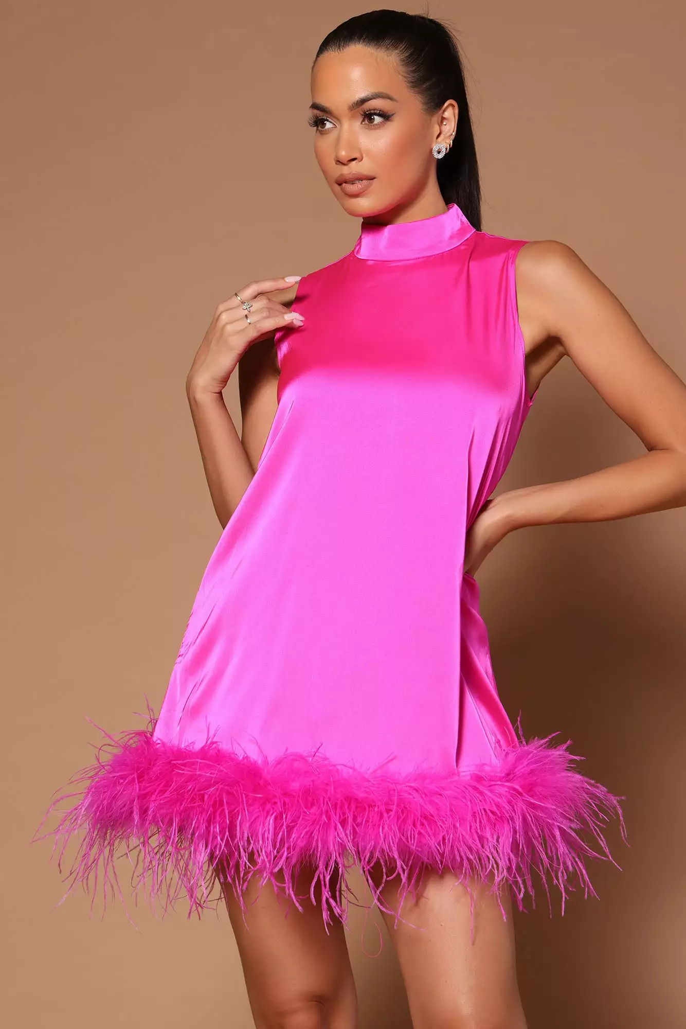 Fashion Nova Delia Doll Feather Trim Mini Dress – Pink