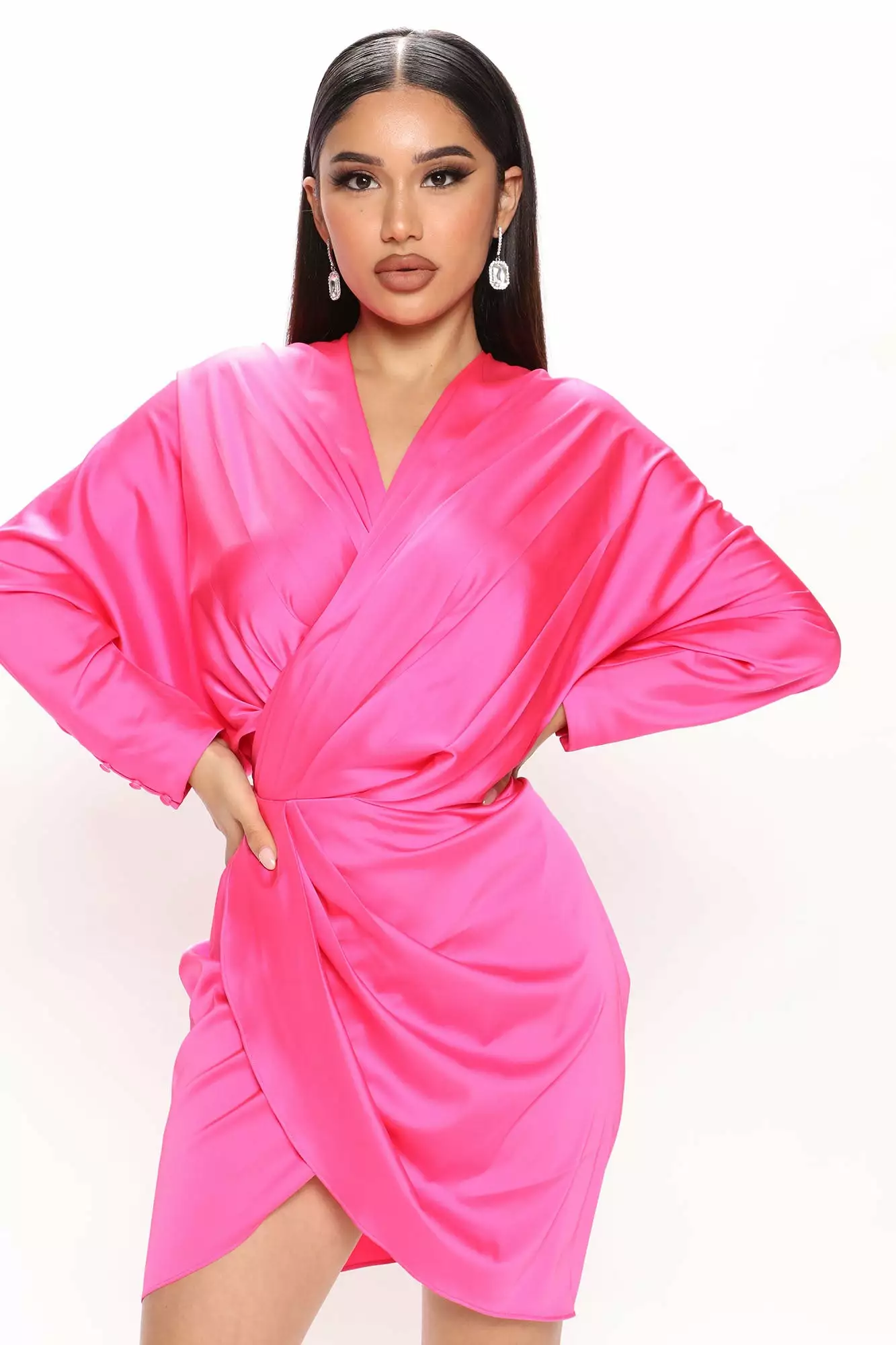 Fashion Nova Diva Treatment Satin Mini Dress – Hot Pink