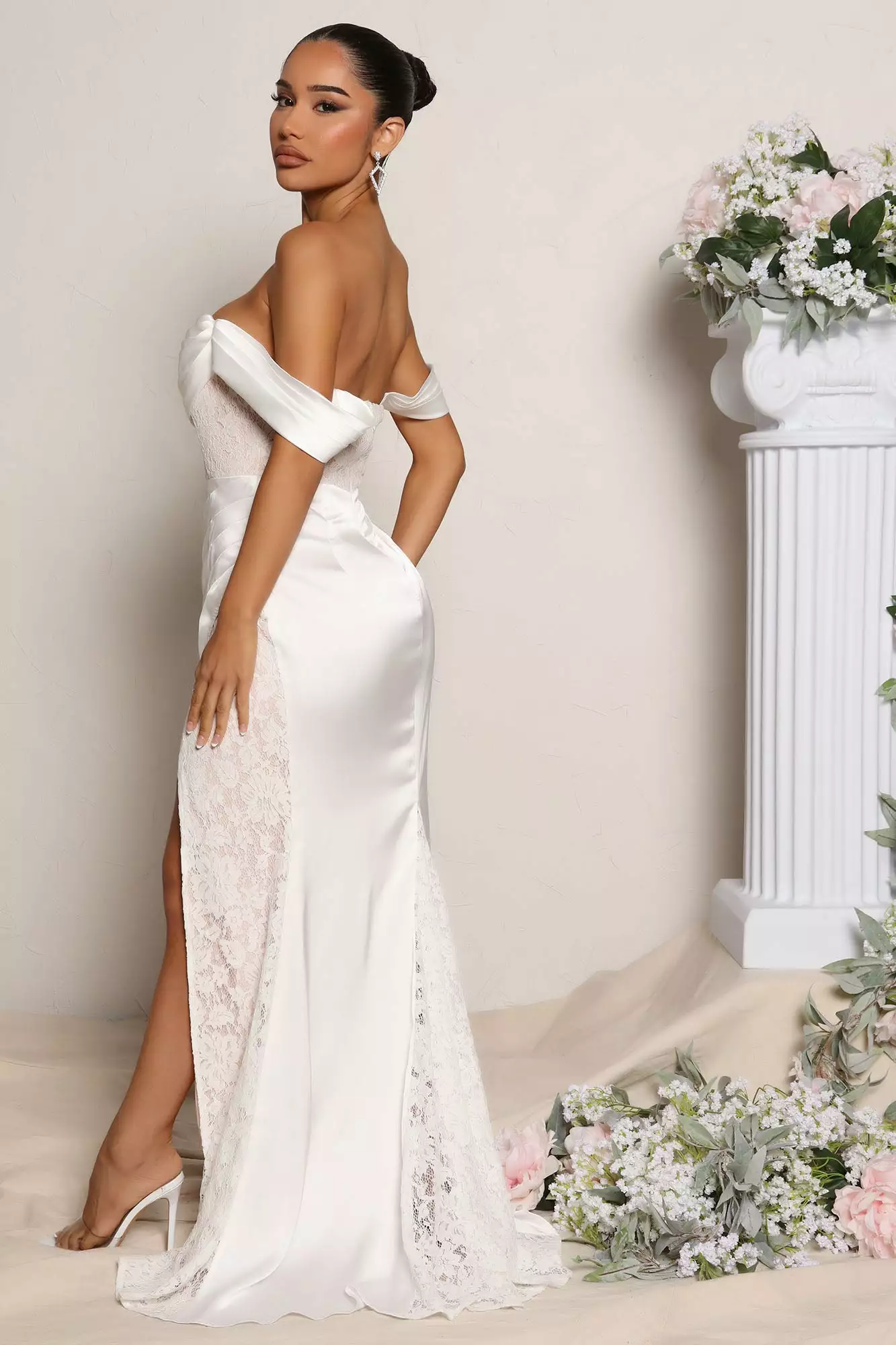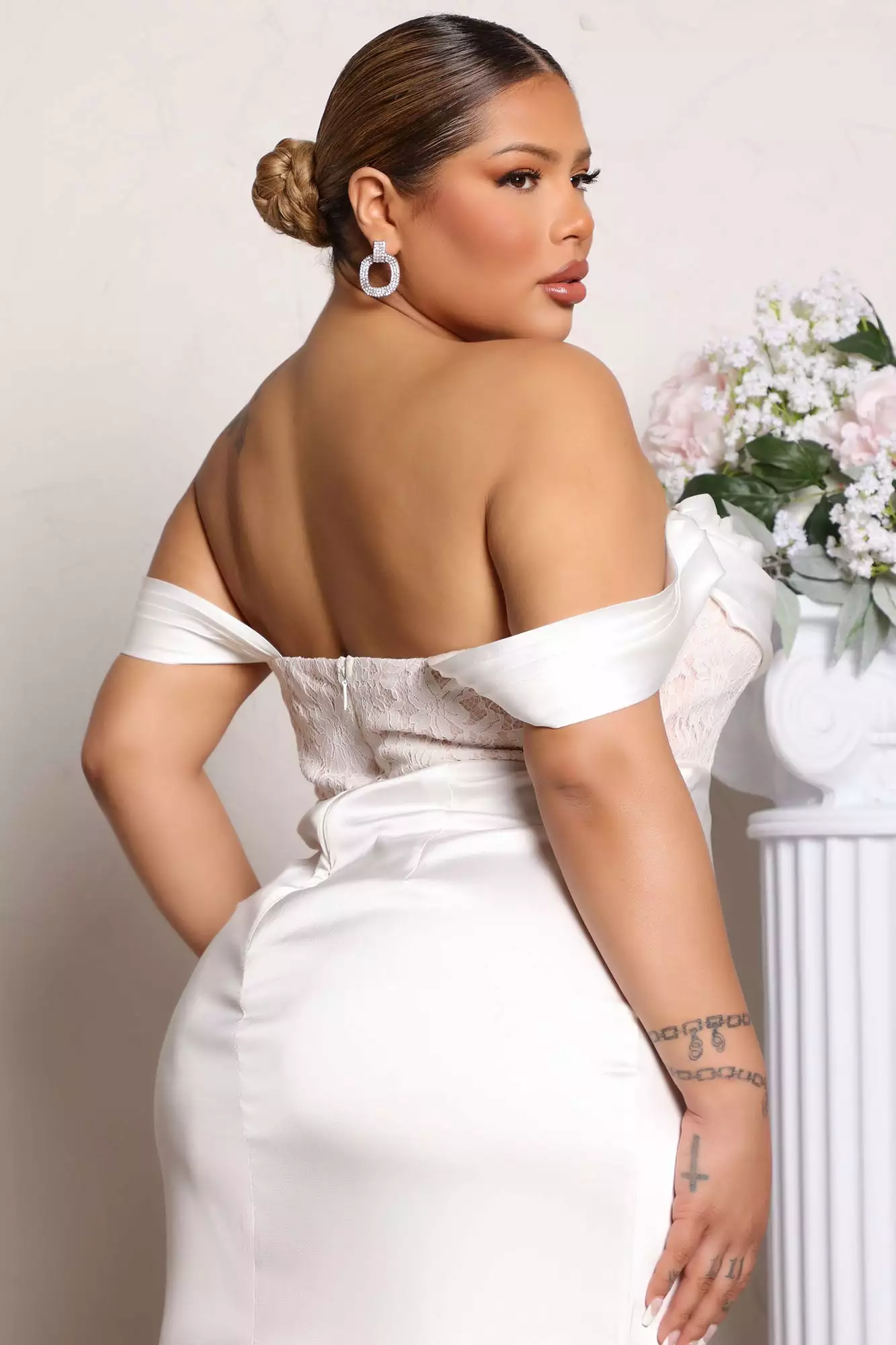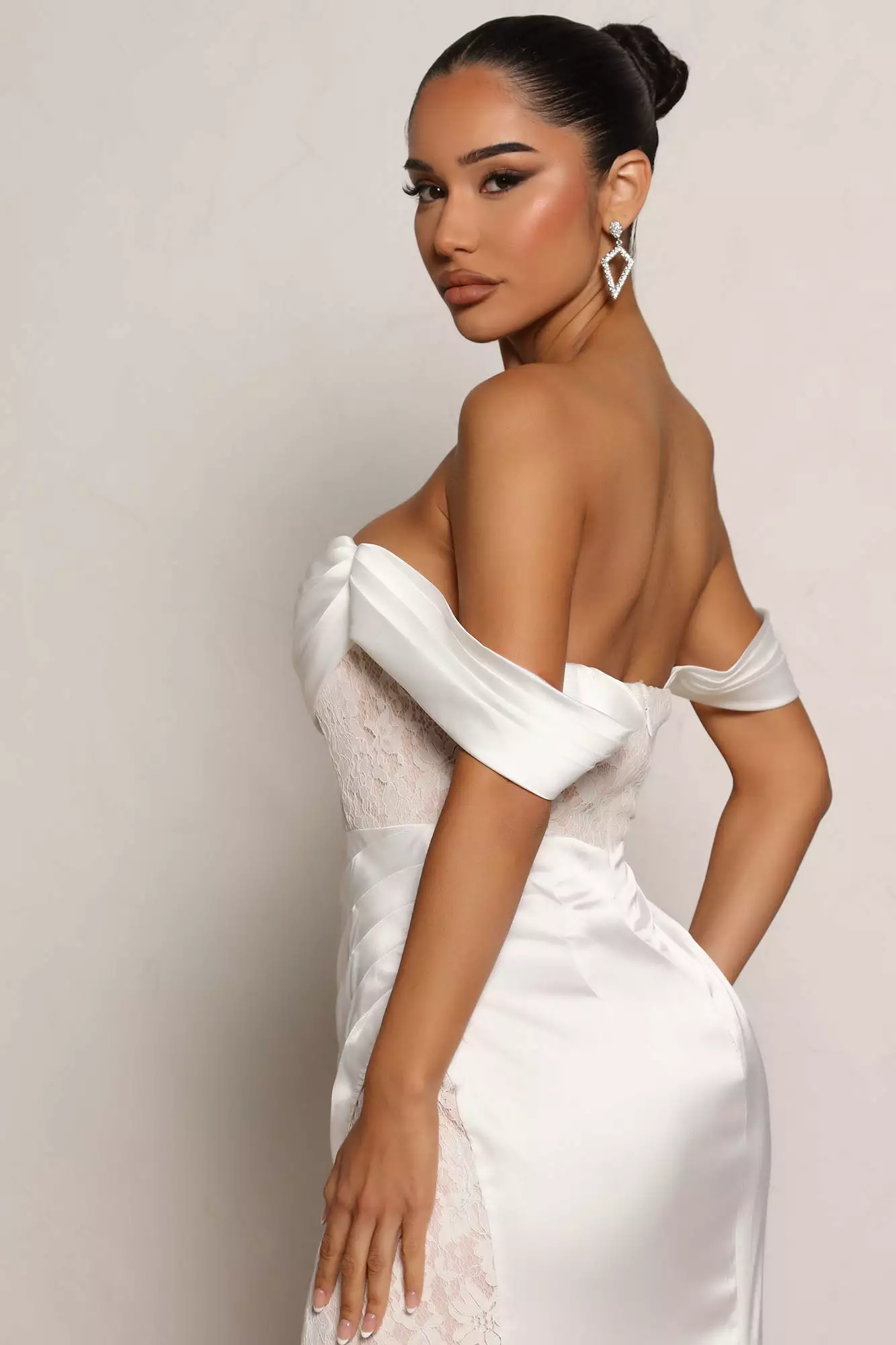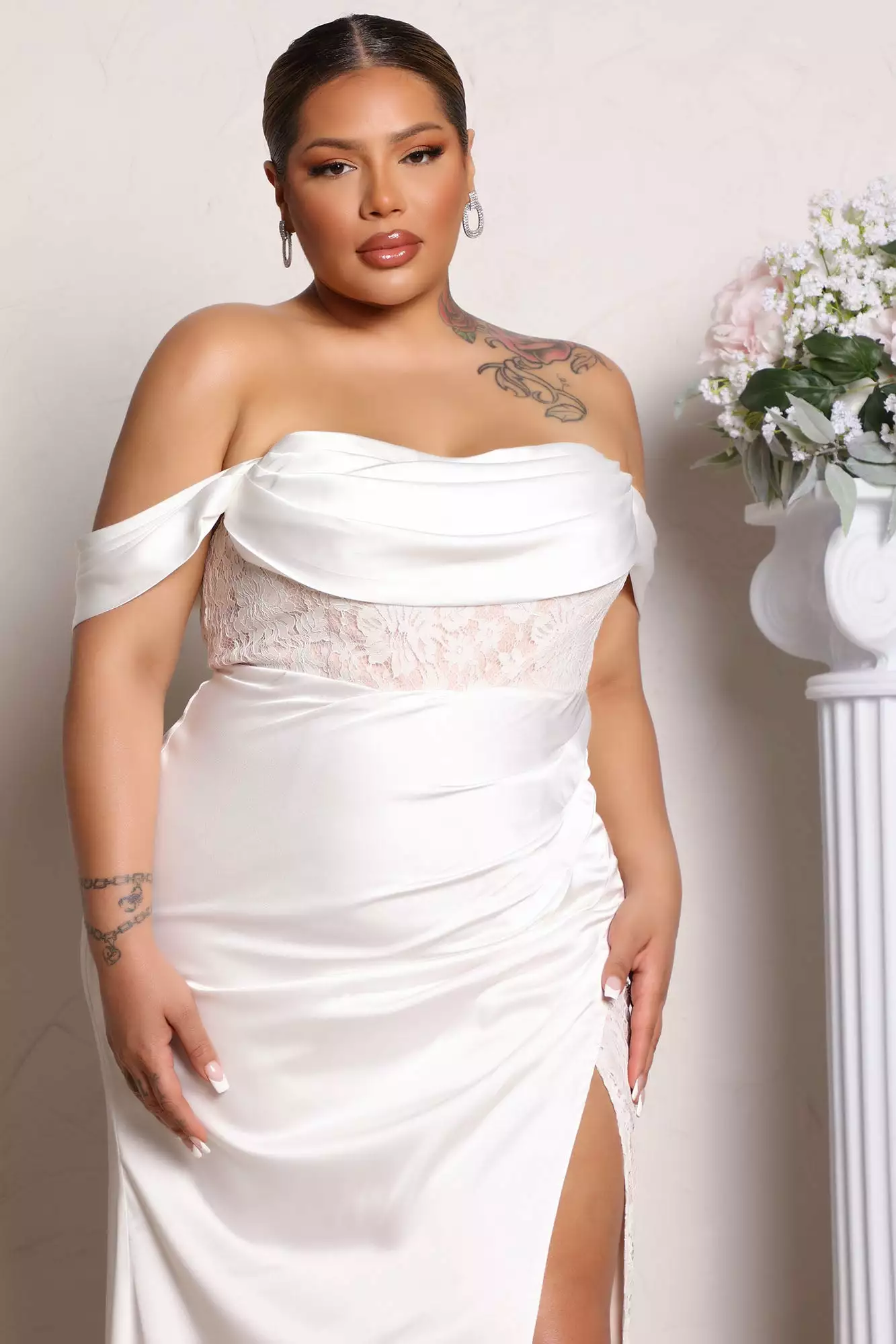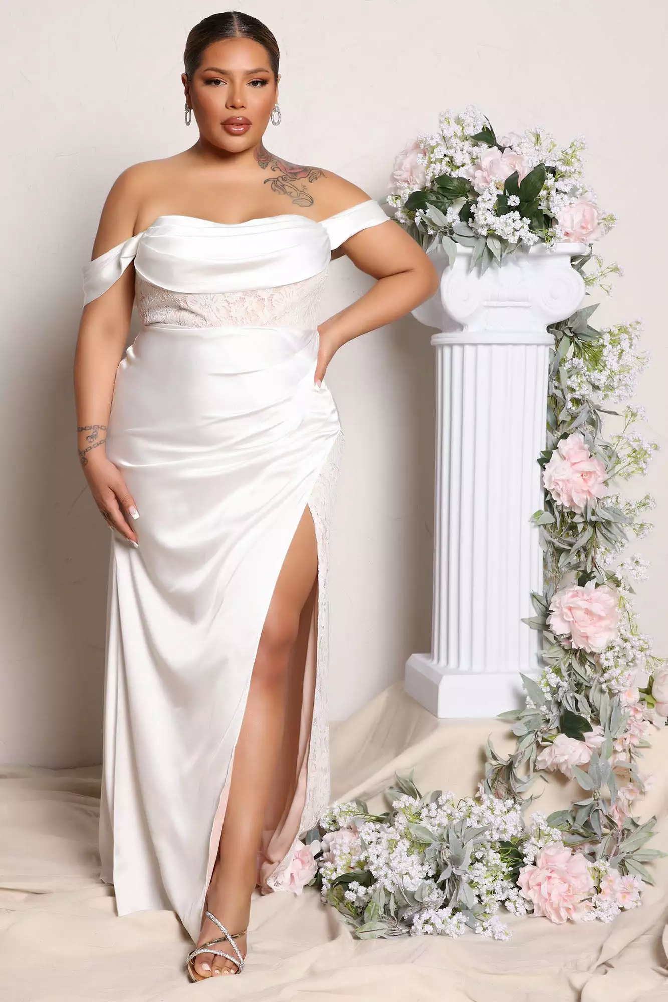 Fashion Nova Down The Aisle Satin Maxi Dress – White