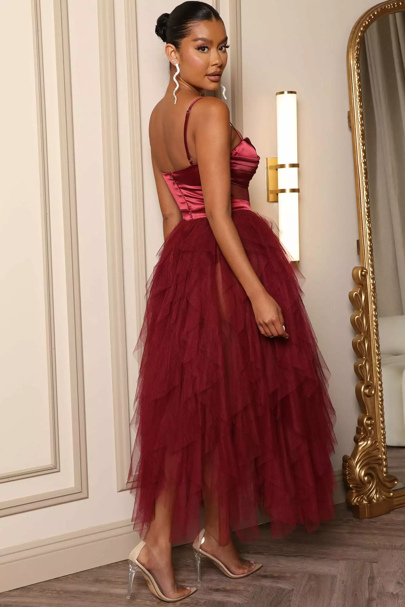 Fashion Nova Dream Of Me Tulle Maxi Dress – Burgundy