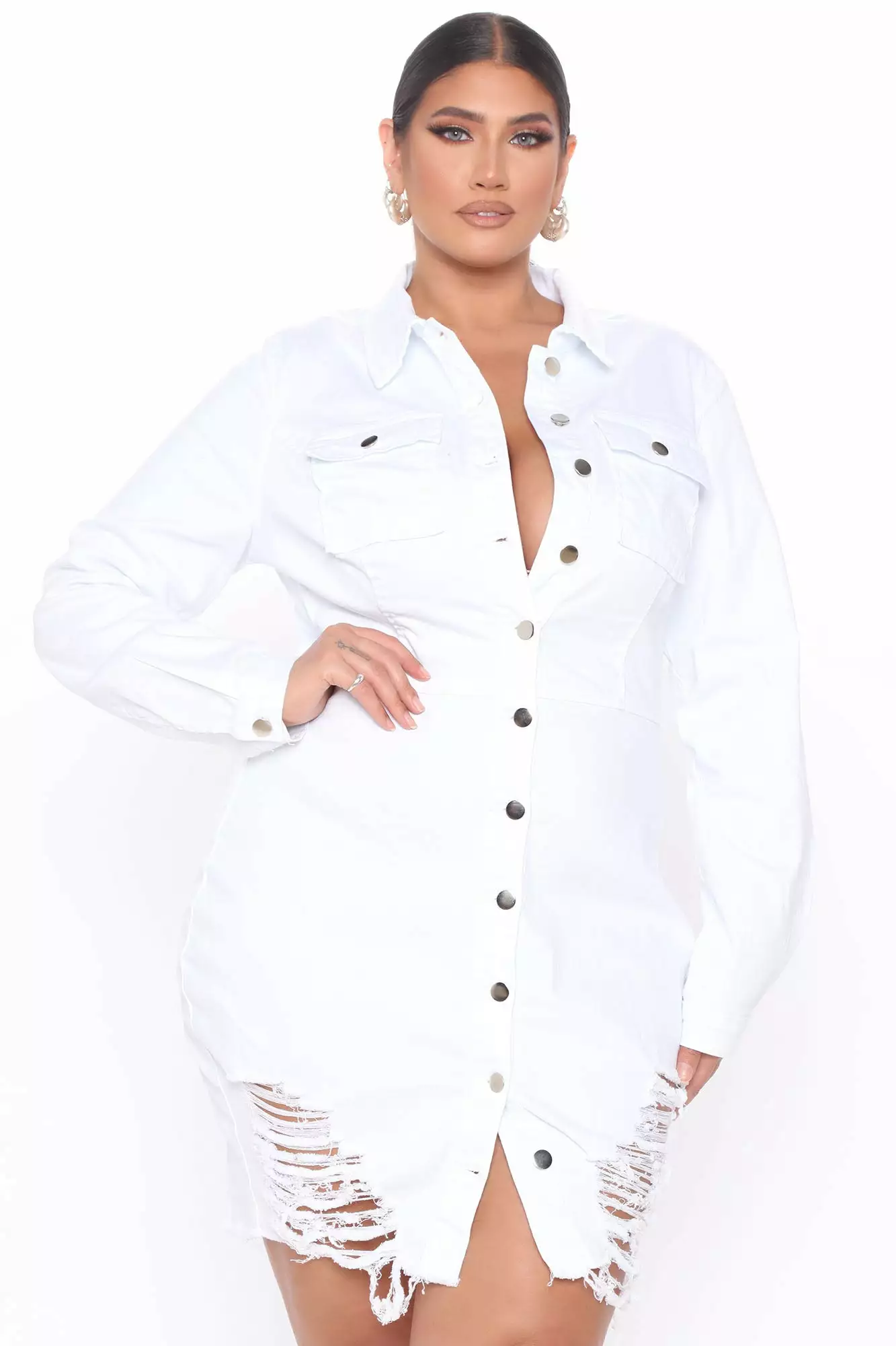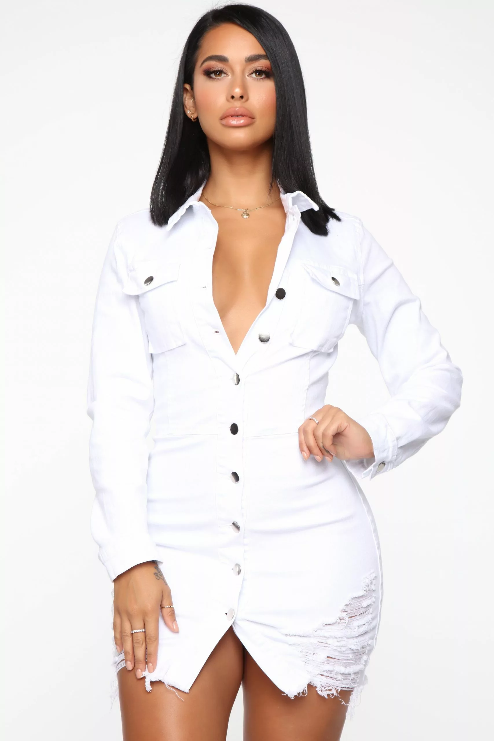 Fashion Nova Editorial Love Distressed Denim Dress – White