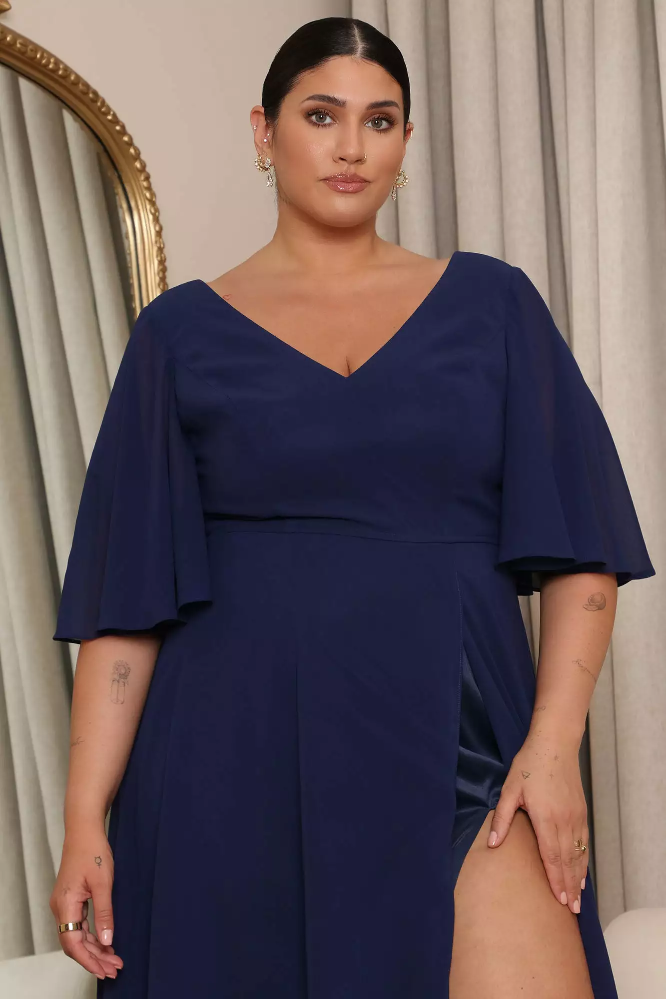 SKU: 6536466759804 Category: Maxi Dresses Tags: All Promo, bridesmaid, color:Navy, ColorFam-Blue, detail:High Slit, Dresses, fabric:Chiffon, fallbogo, Last Chance