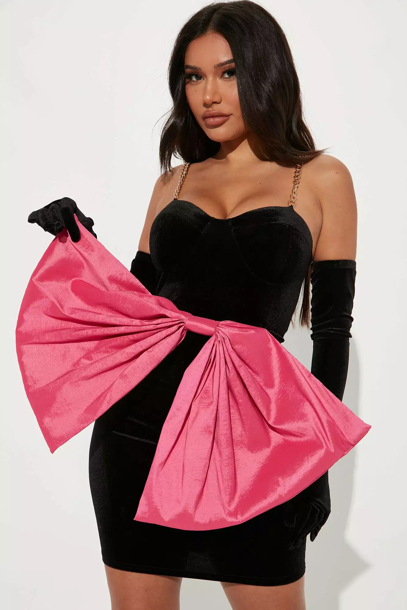 Fashion Nova Emily Velvet Dress Set – Black/Pink