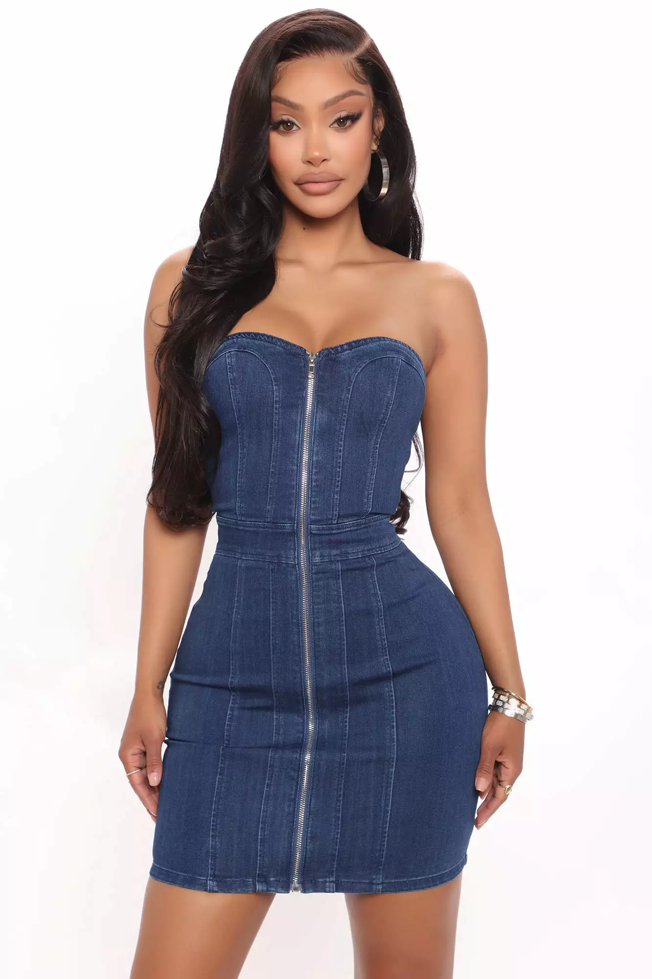 Fashion Nova Esmeralda Denim Mini Dress – Dark Wash