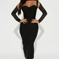 Fashion Nova Evelyn Bandage Midi Dress – Black