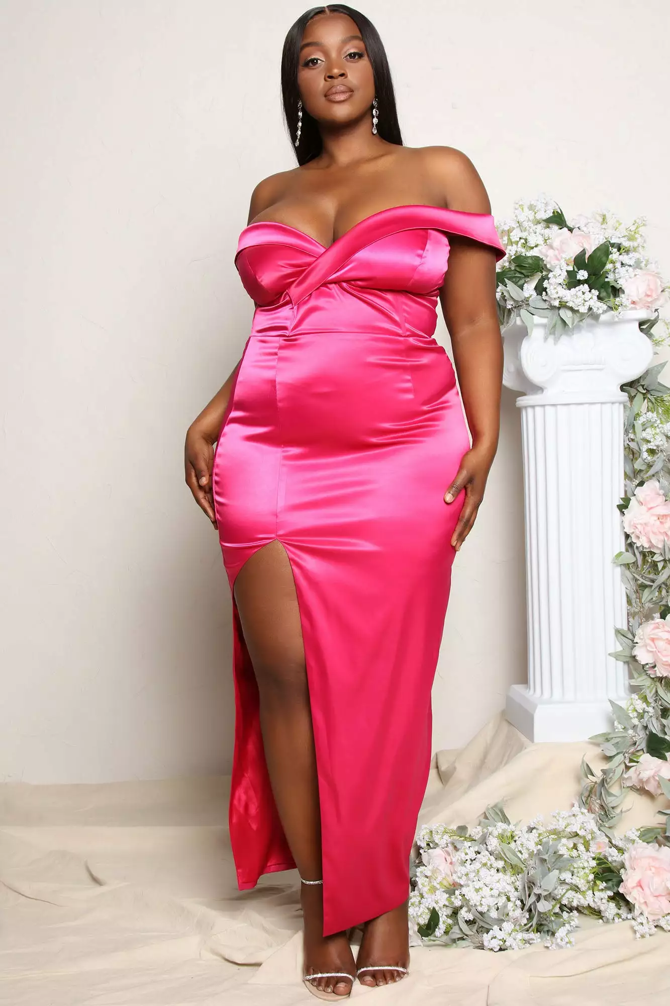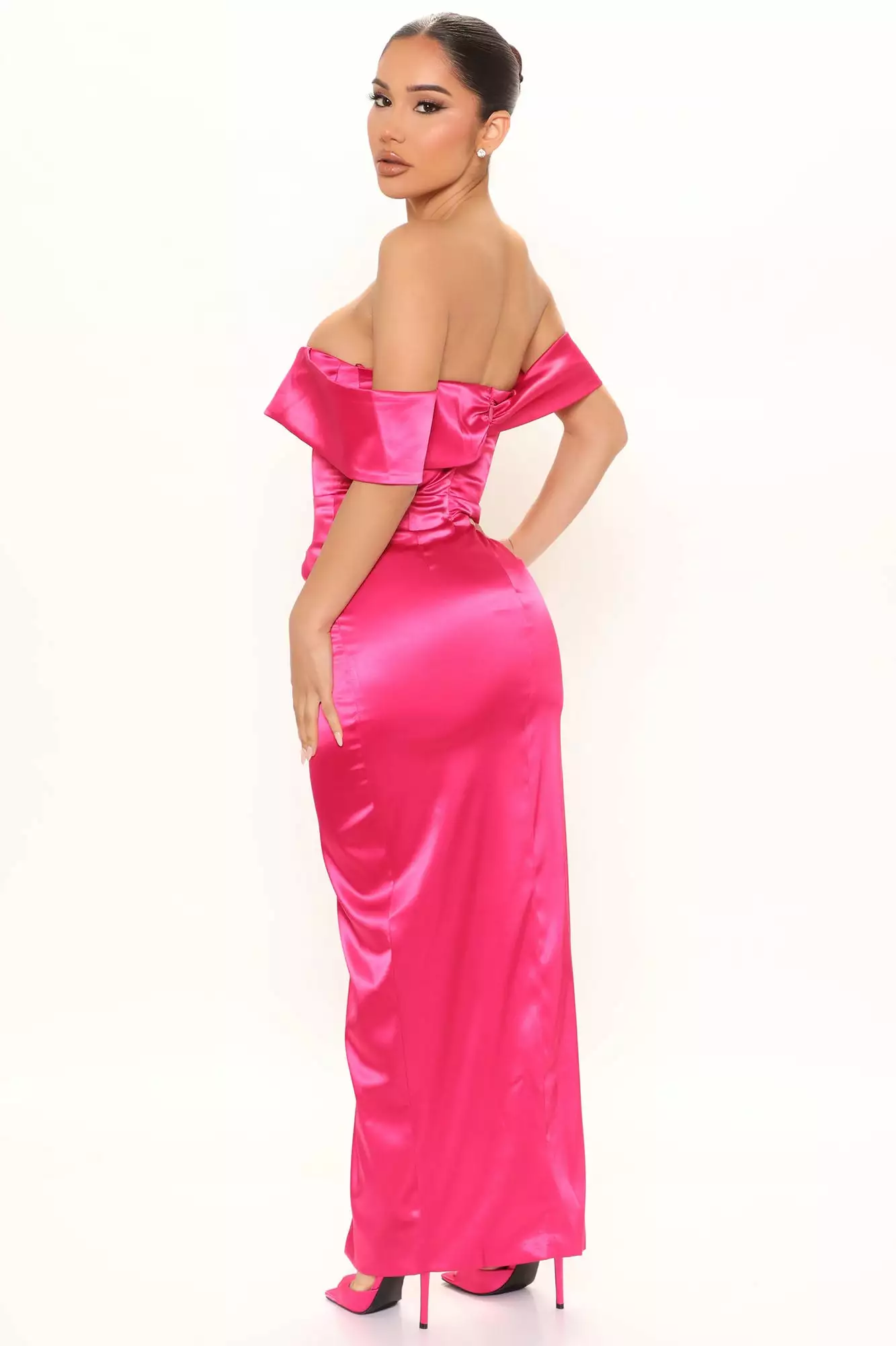 Fashion Nova Ever After Satin Maxi Dress – Fuchsia