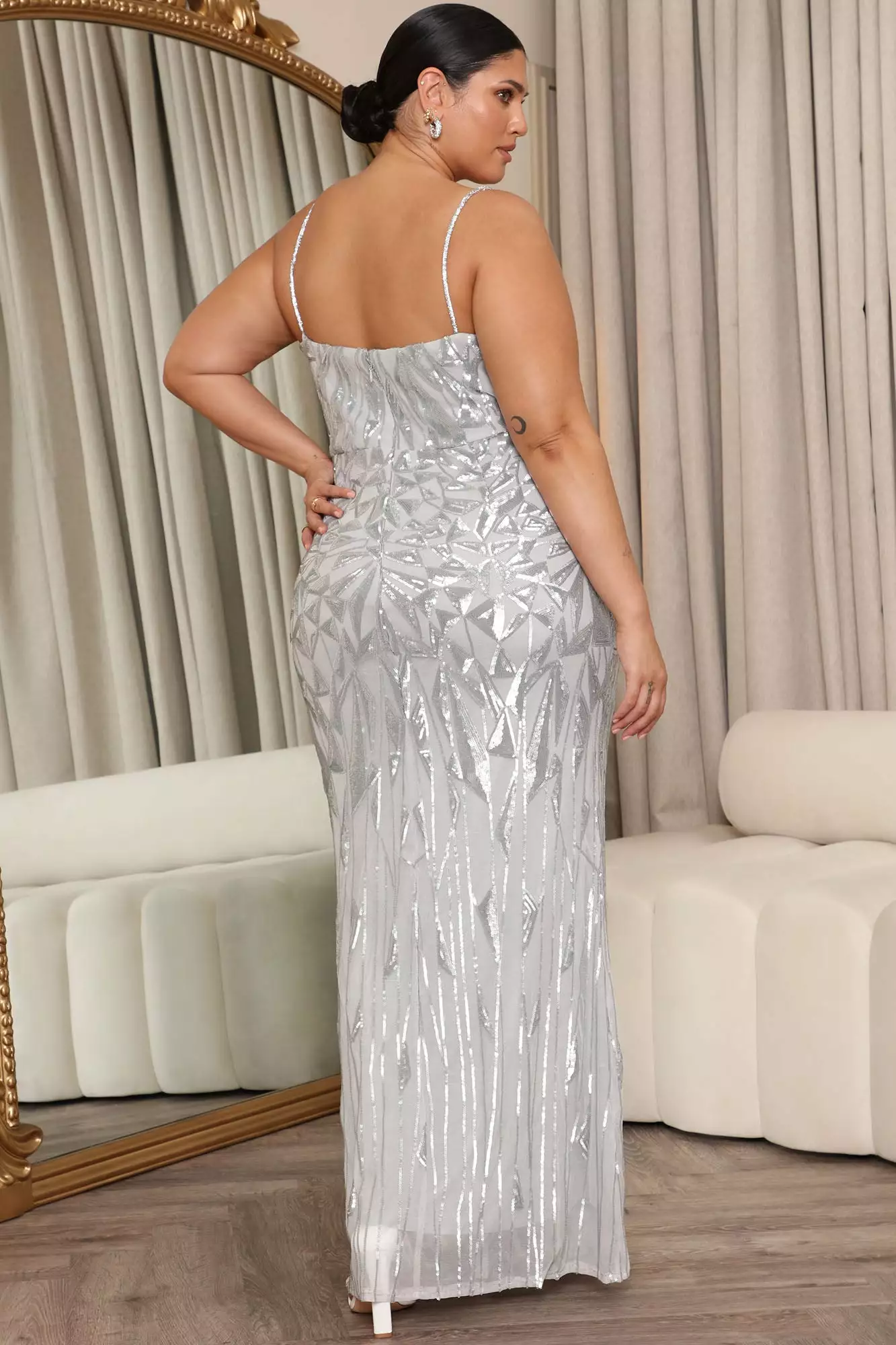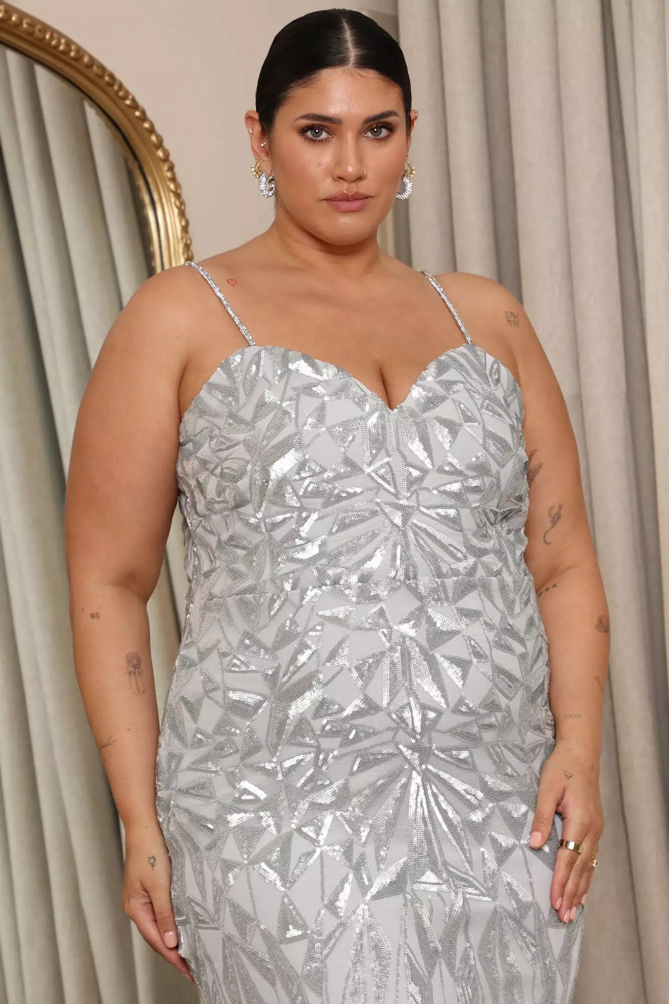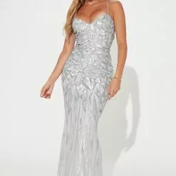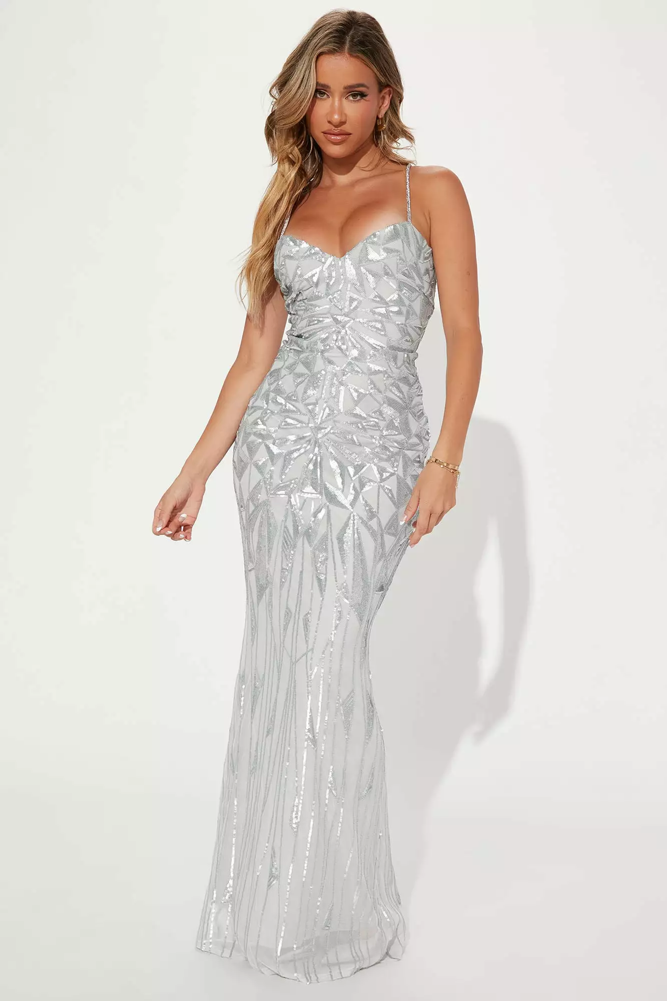 Fashion Nova Every Desire Sequin Maxi Dress – Silver
