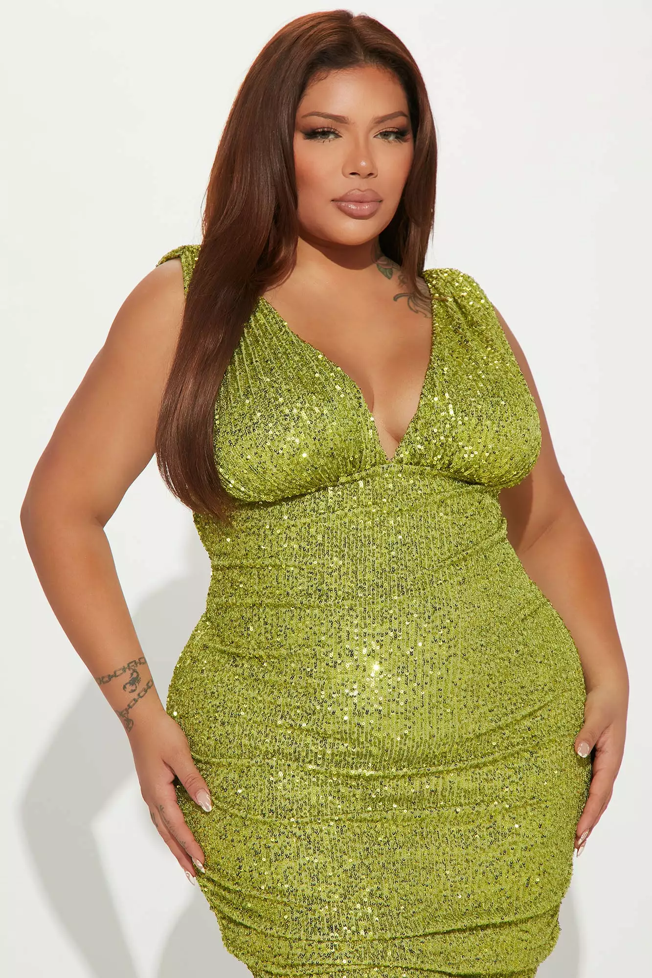 Fashion Nova Every Woman Sequin Midi Dress – Chartreuse