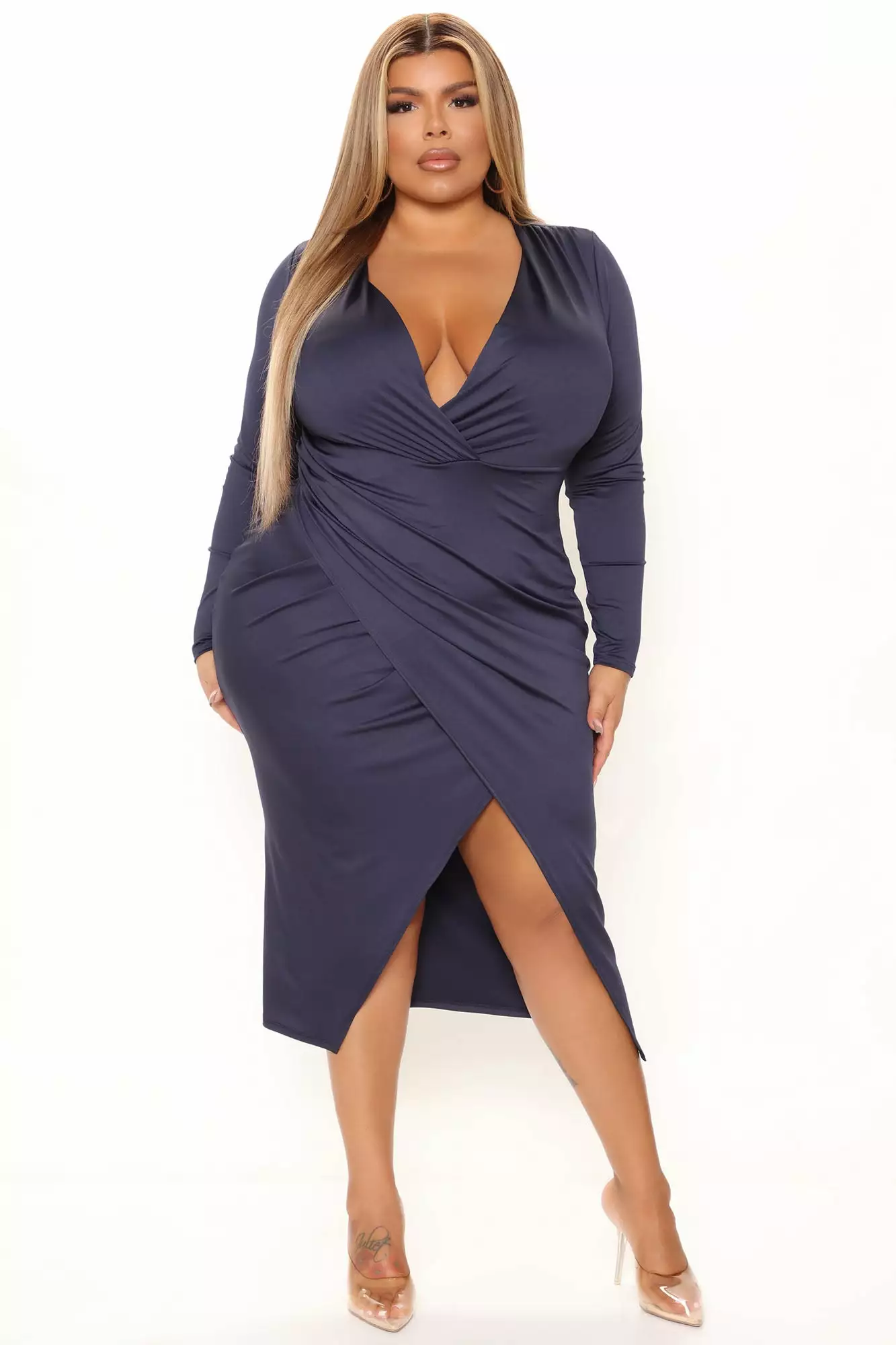 Fashion Nova Eyes On Me Ruched Midi Dress – Navy
